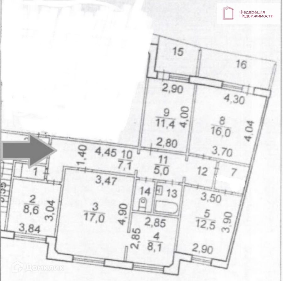 Жилая площадь 56.9 м2