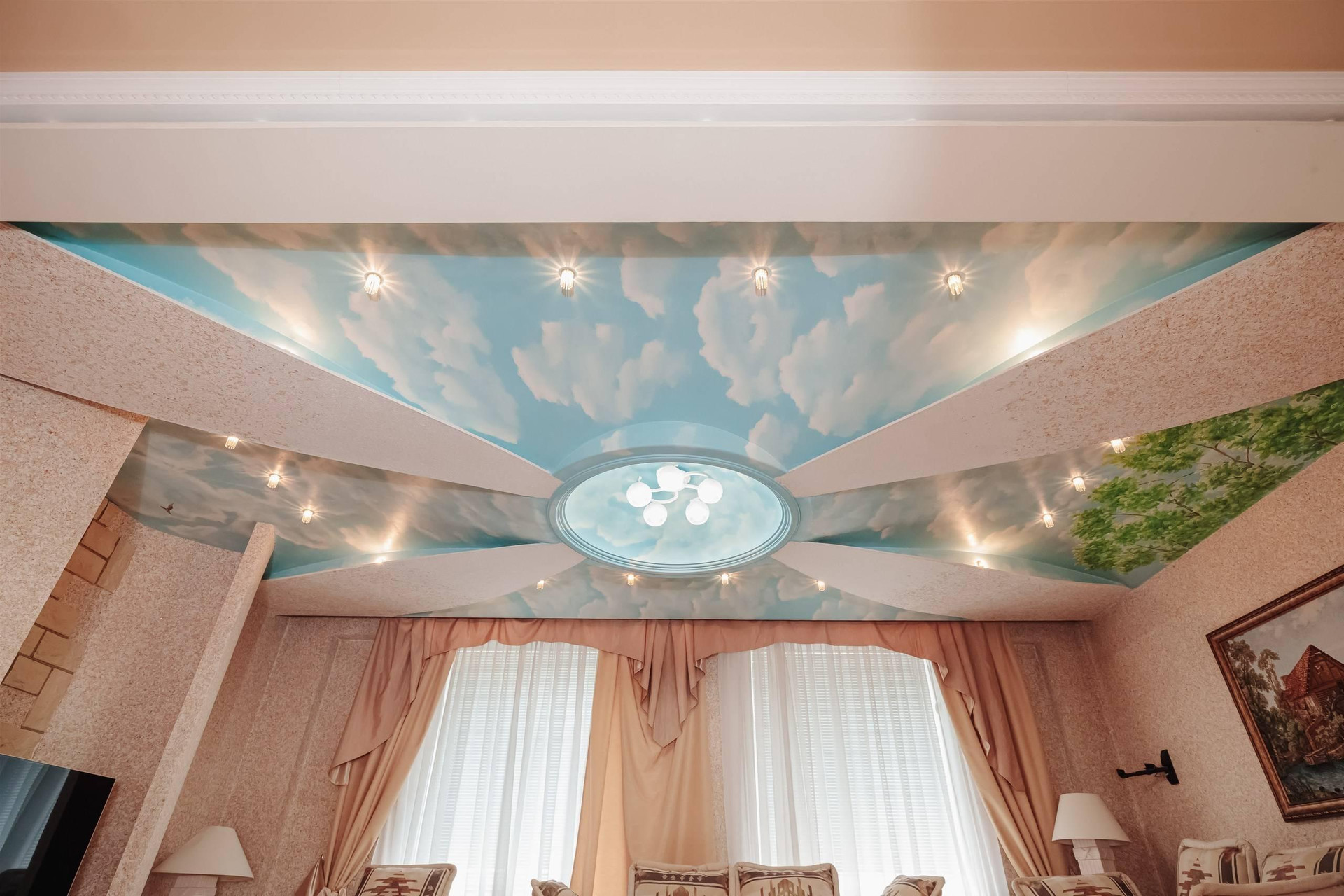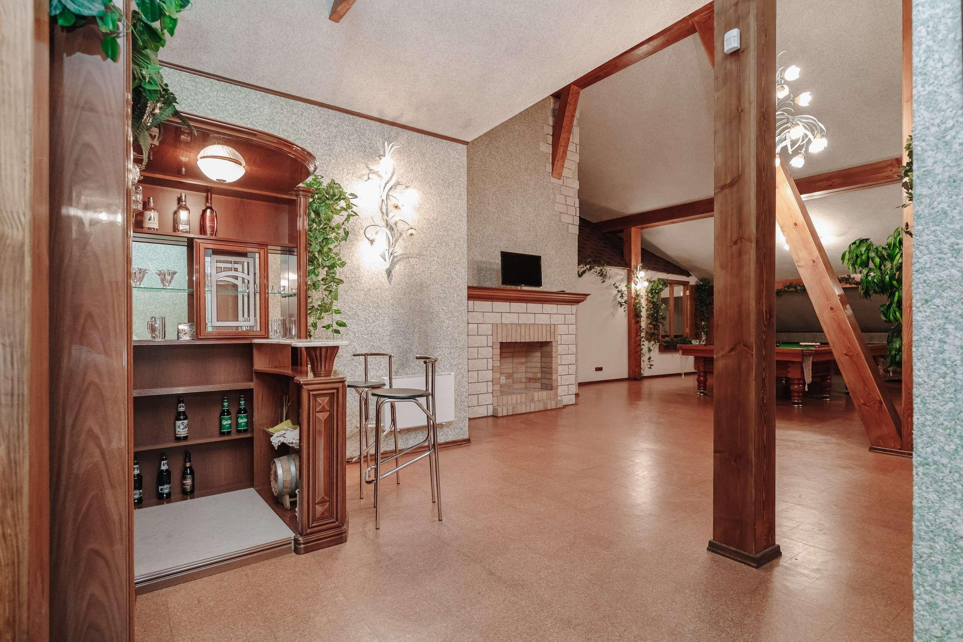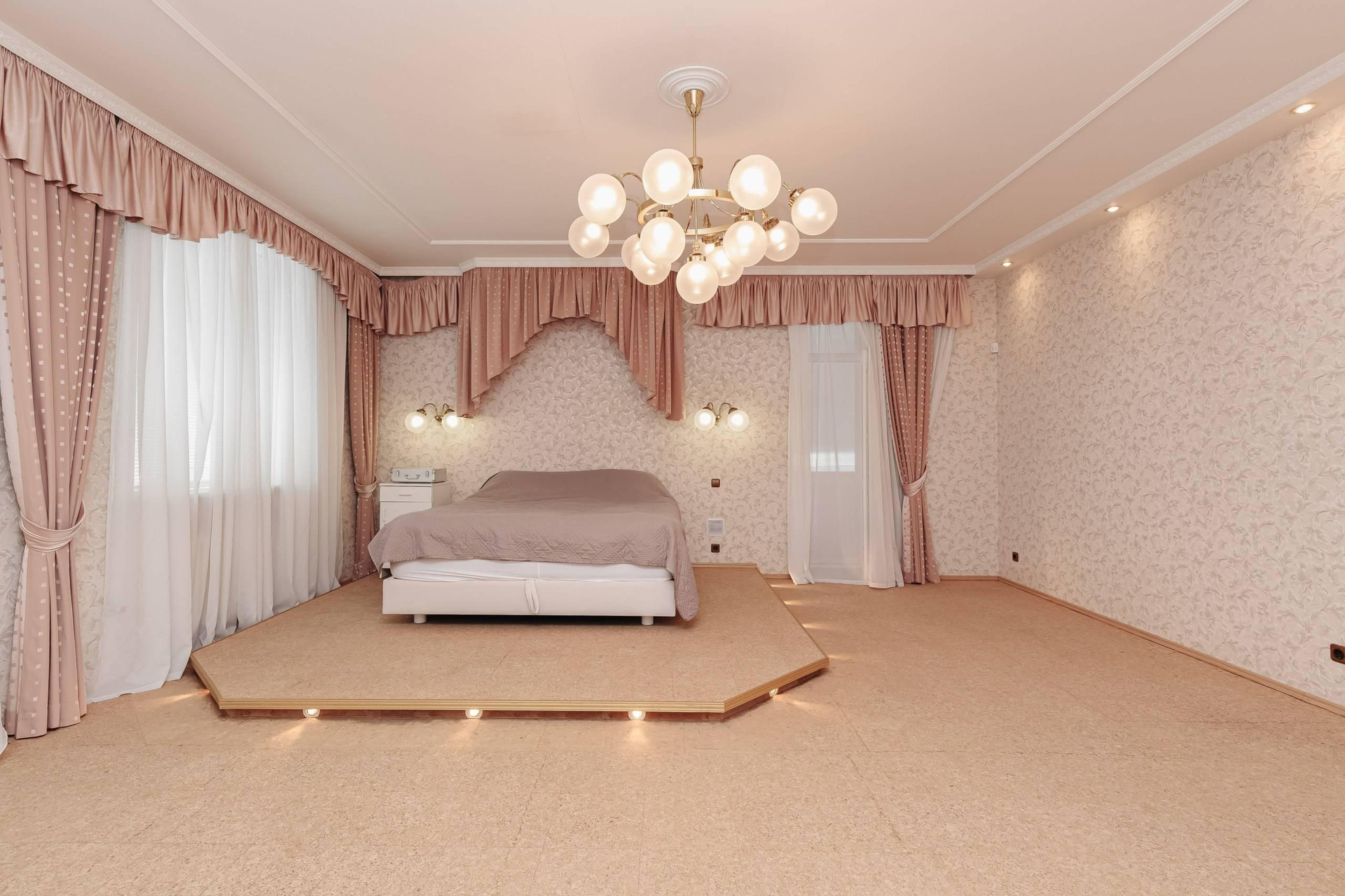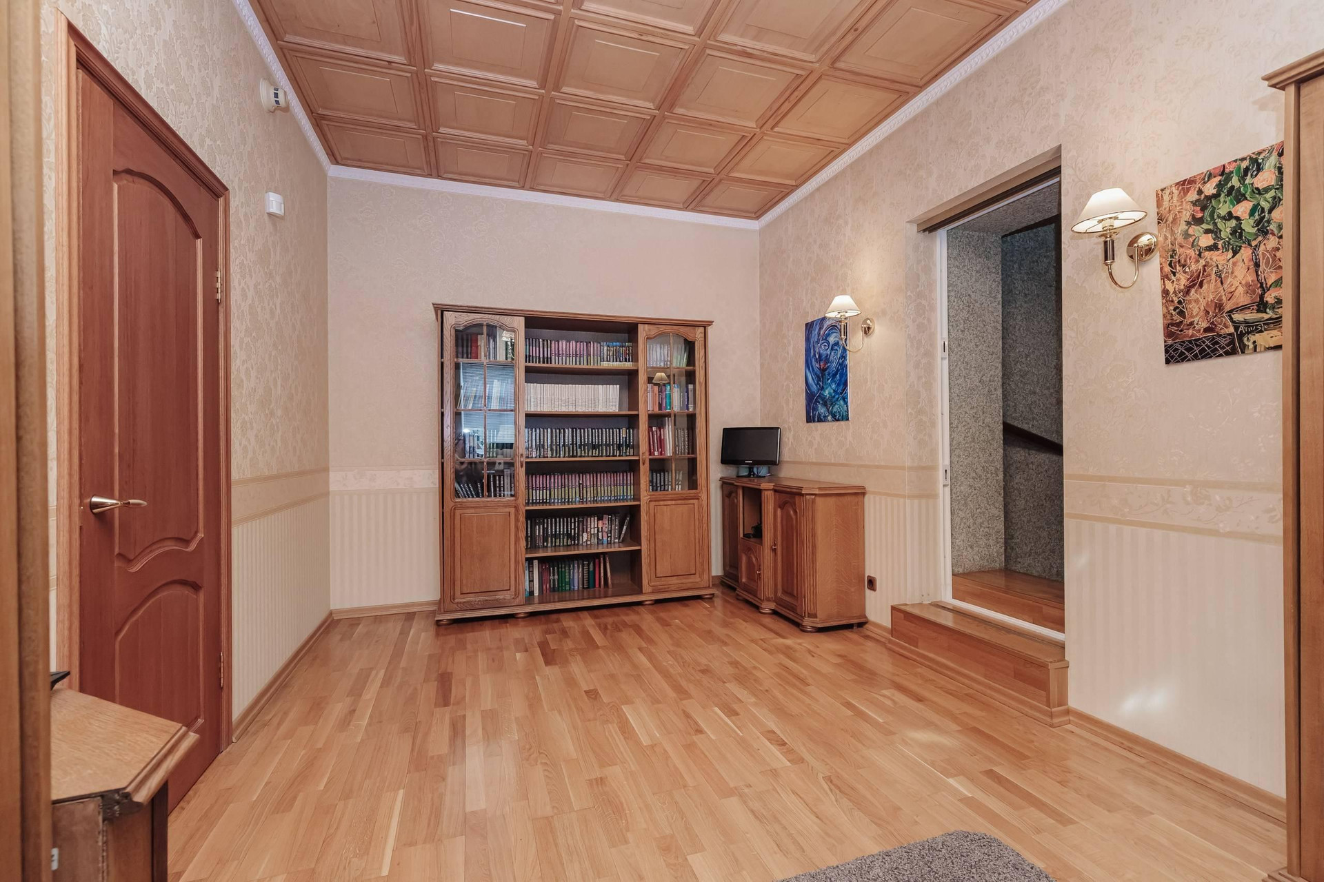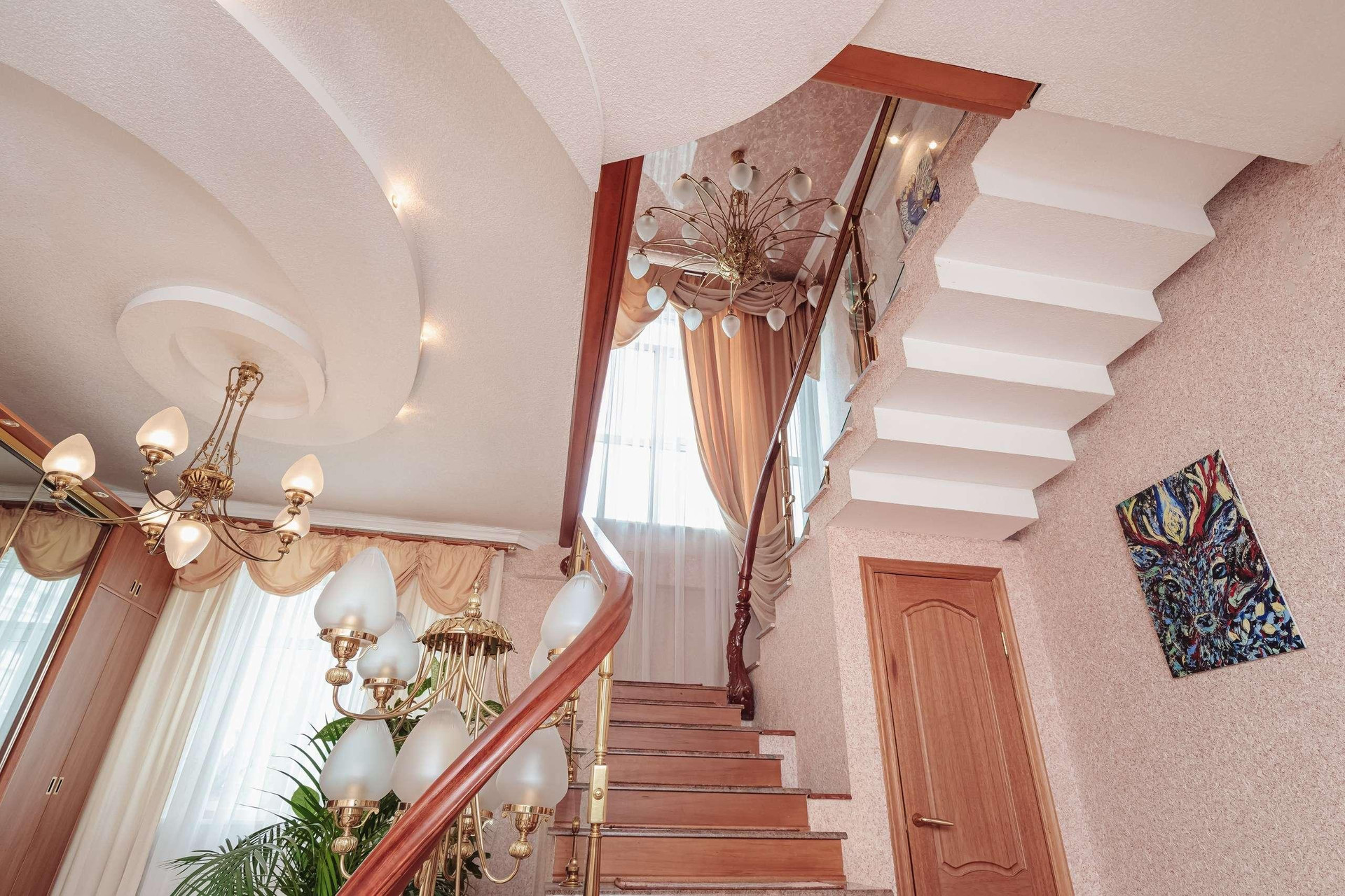 В квартире 2 этажа ( 4й и 5й этажи в подъезде): на первом этаже располагаются гостиная с натуральным камином с живым огнём, столовая, просторная кухня, санузел с электросауной на 2 человек (в которой можно париться с веником, аромамаслами), просторный холл и выполненная из натурального камня лестница. Второй этаж включает 2 спальни, 2 рабочих кабинета, бильярдная зона, спортзал, бар, сейфовая, прачечная. На каждом этаже простосторные лоджии с видом на двор, утопающих в зелени, где по утрам поют птицы.
