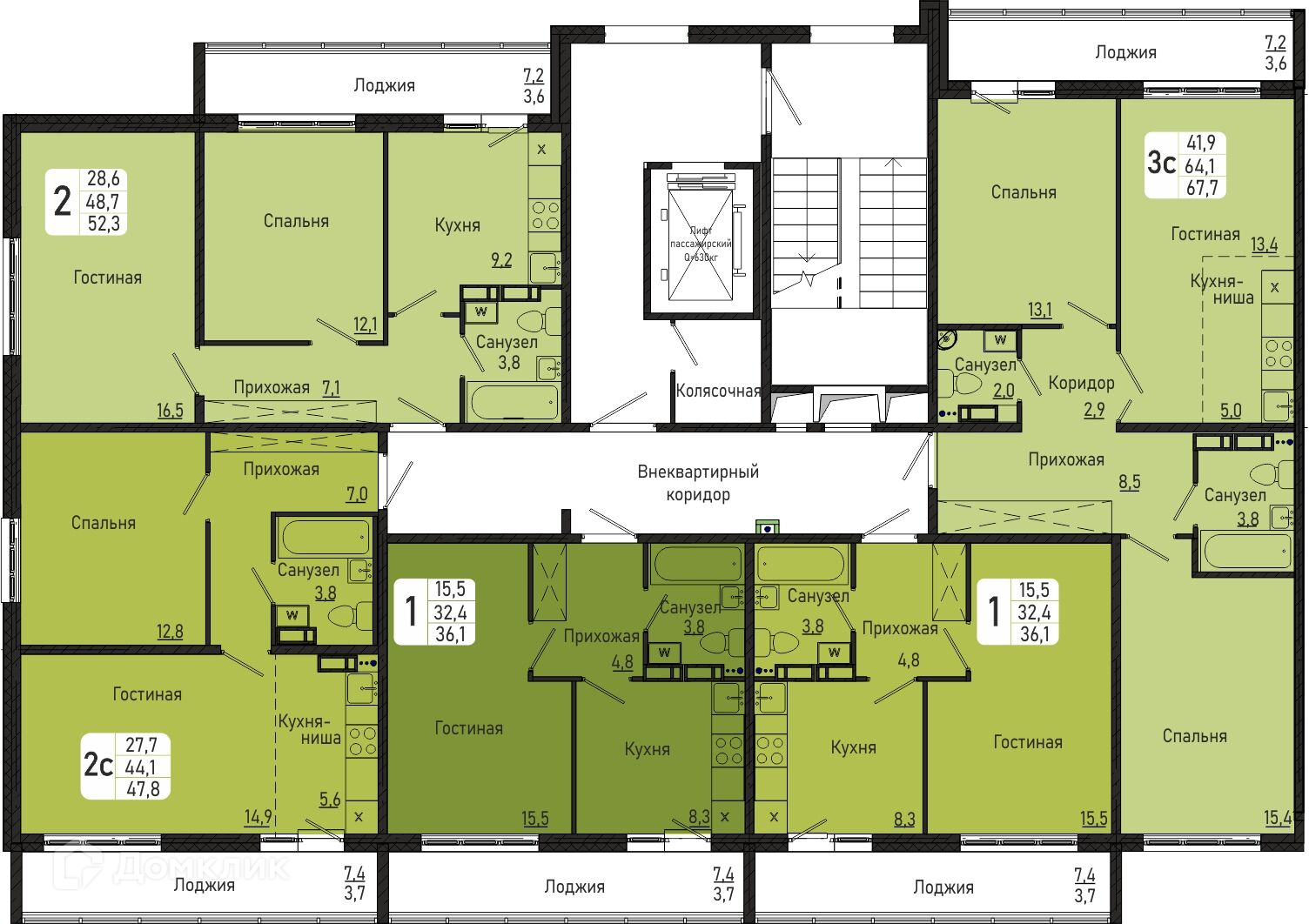 Общая площадь 52.4 м2
