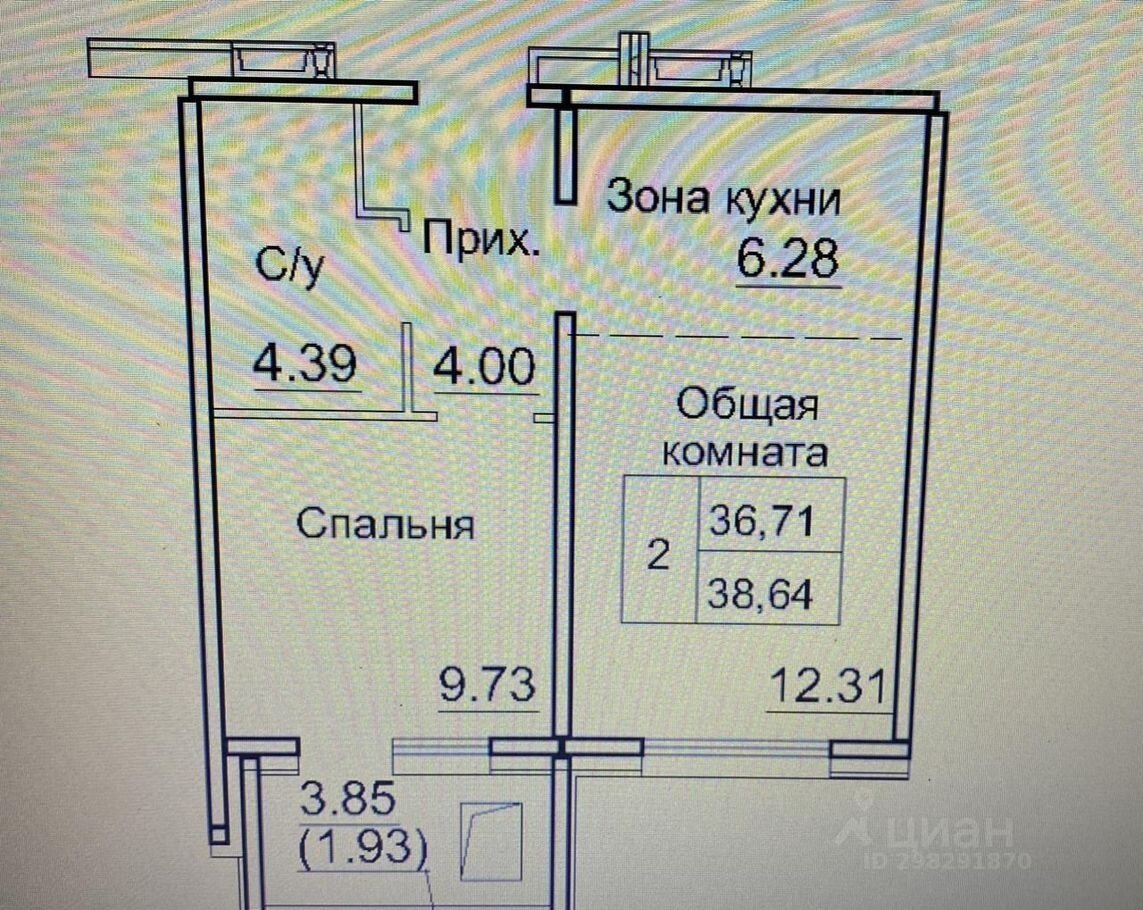 Общая площадь 36.7 м2