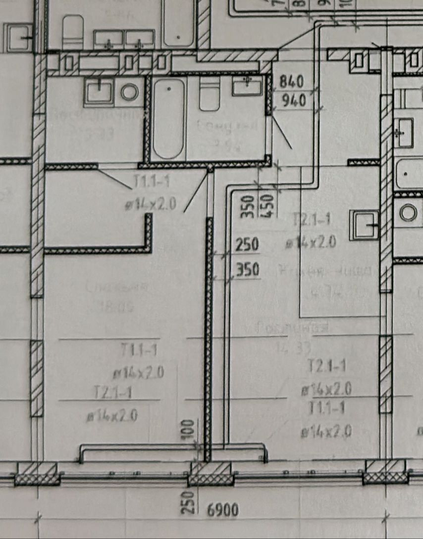 Жилая площадь 41.4 м2