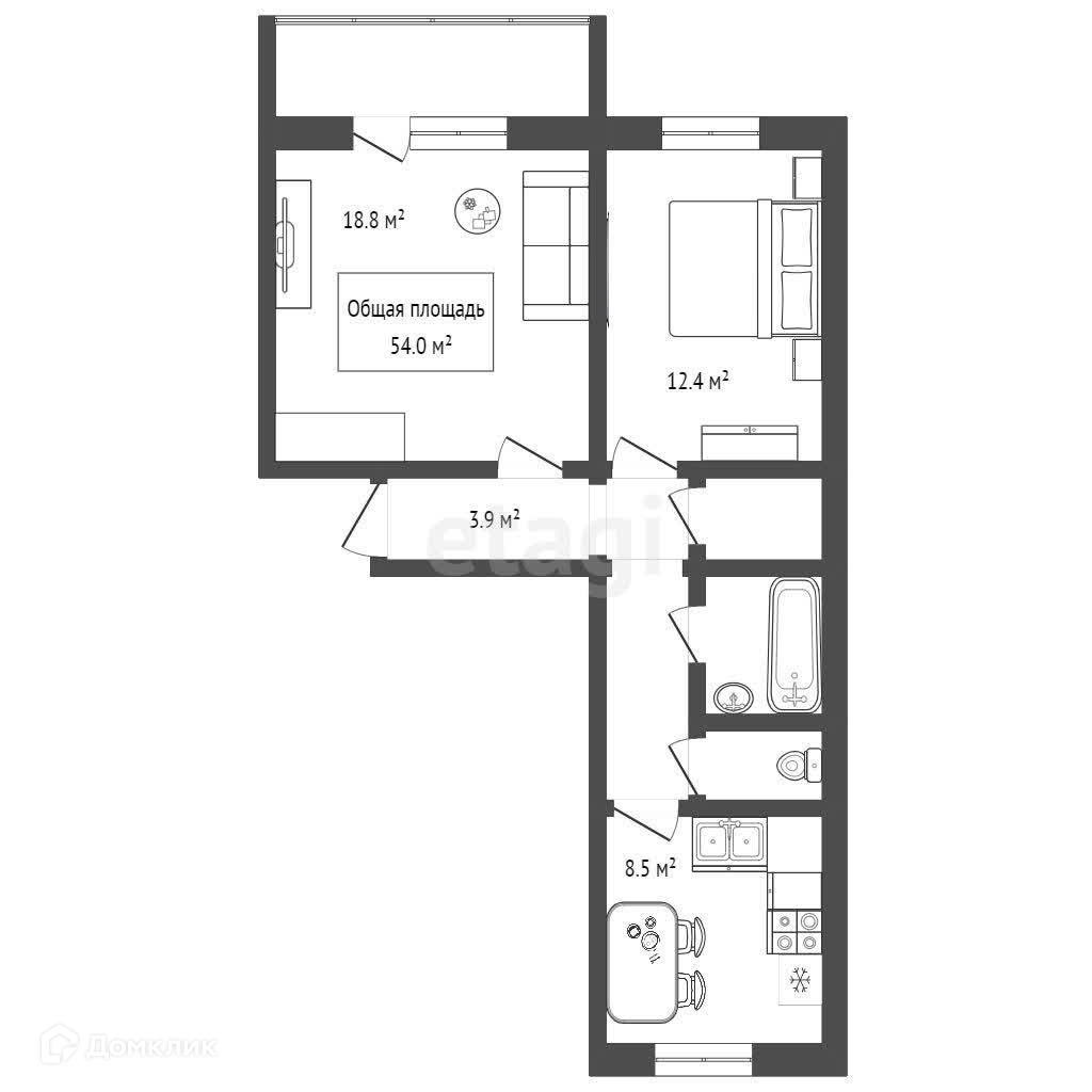 Общая площадь 54 м2