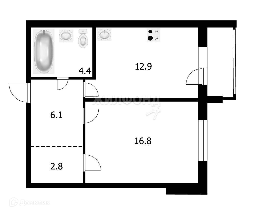 Жилая площадь 16.8 м2