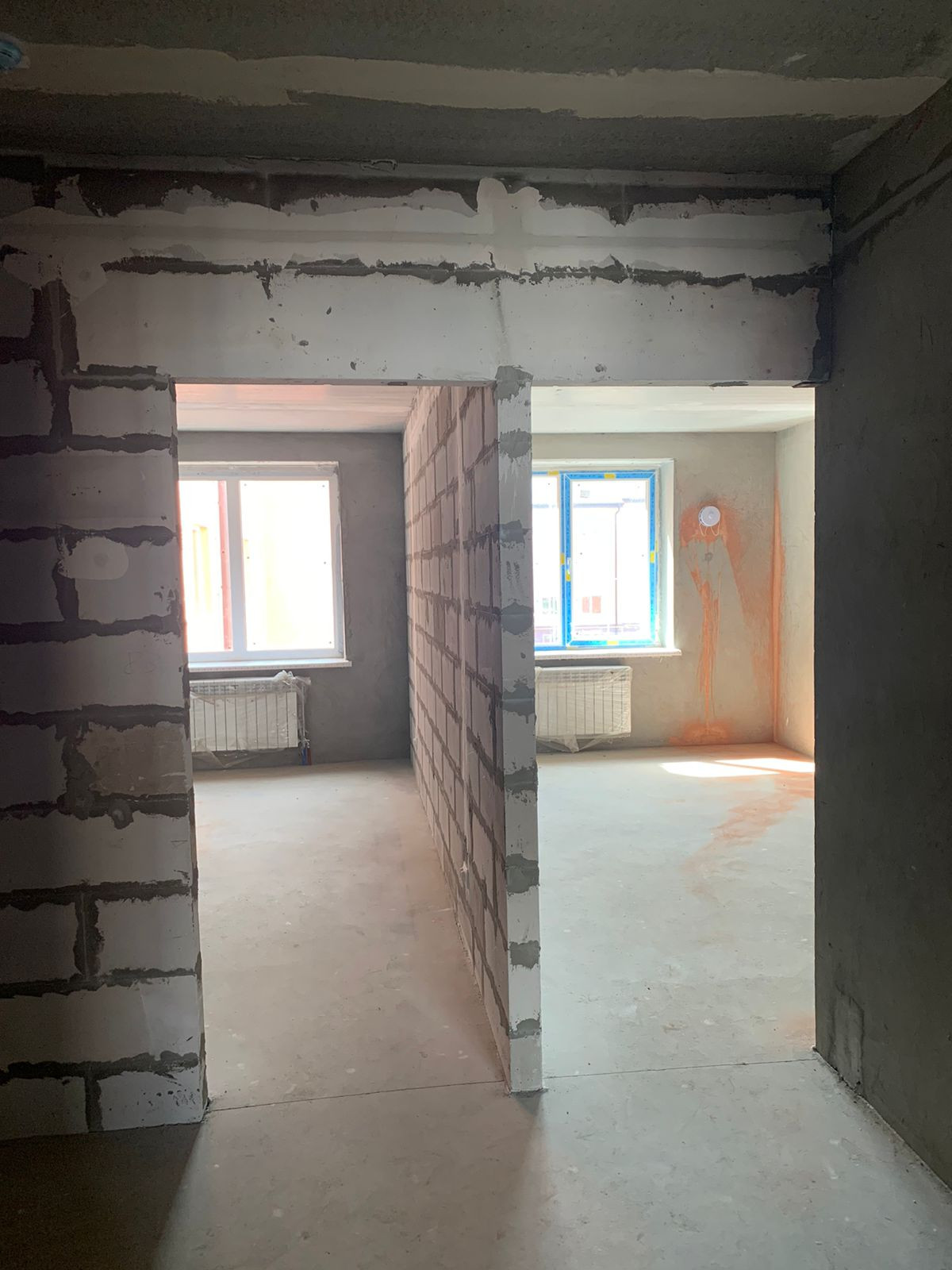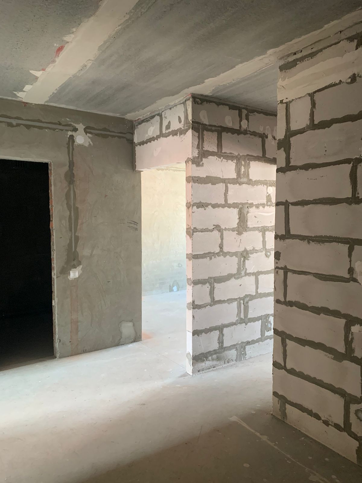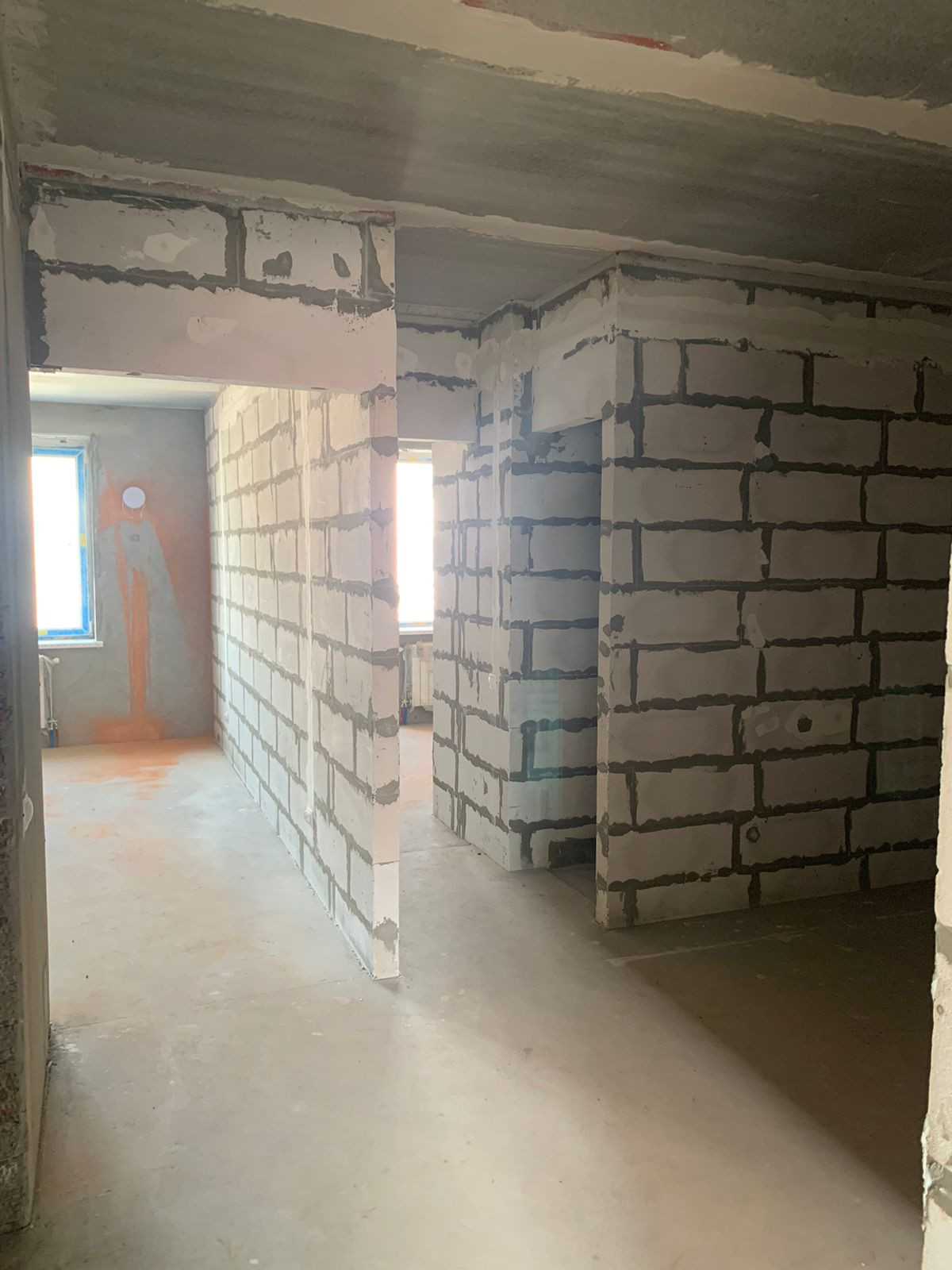 Светлая просторная квартира под самоотделку, несущих стен внутри квартиры нет, перегородки комнатные из сибита. Несущие стены оштукатурены. Полы ровные.