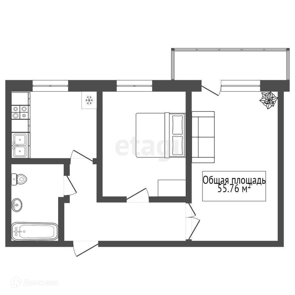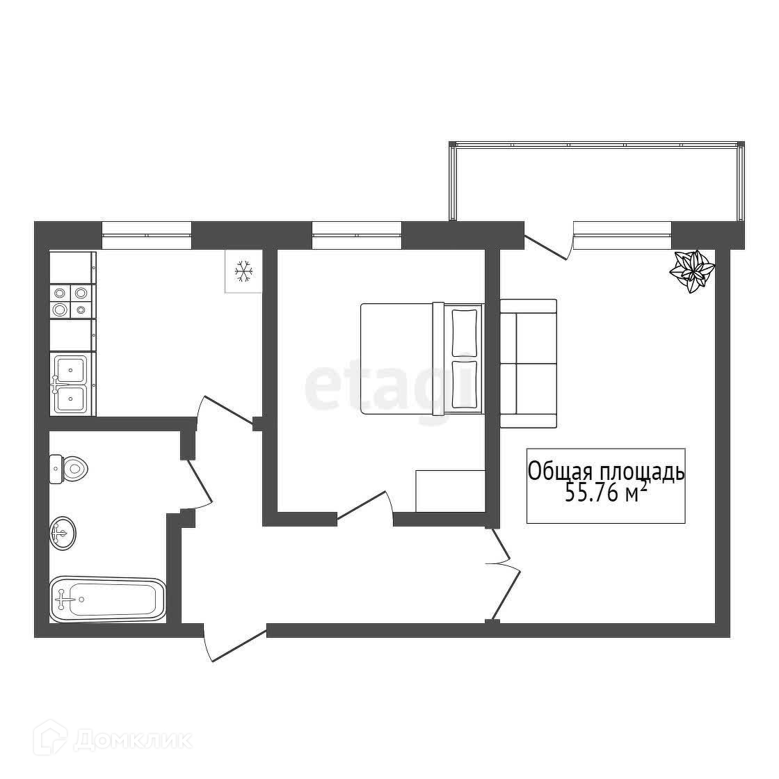 Общая площадь 59 м2