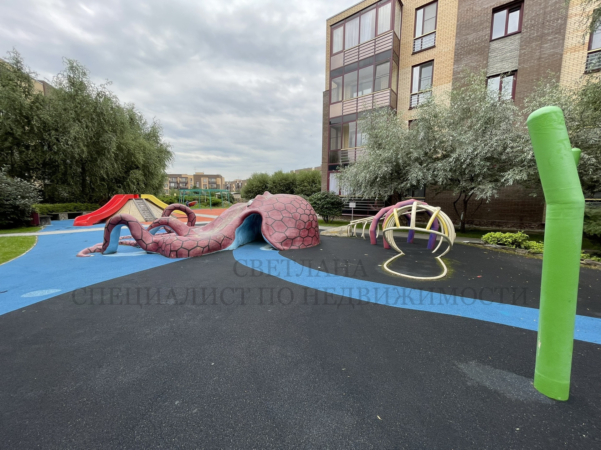 Во дворе комплекса обустроены уютные дворики со своей атмосферой: много зелени, дизайнерская архитектура, плоский фонтан, самые интересные и разнообразные детские и спортивные площадки на любой возраст, что позволяет отдыхать семьей на свежем воздухе, насладиться тишиной, детям проводить много времени на улице с друзьями.