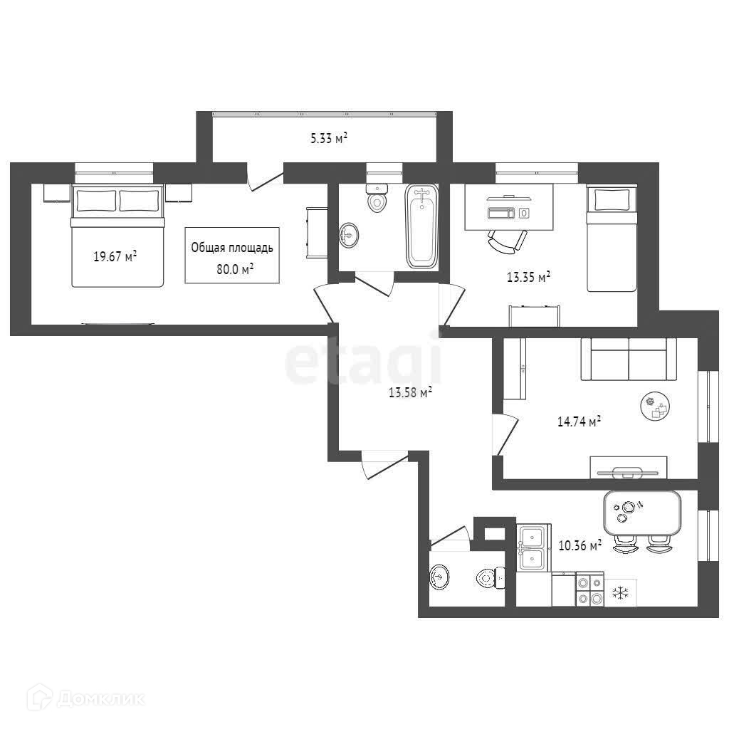 Общая площадь 80 м2