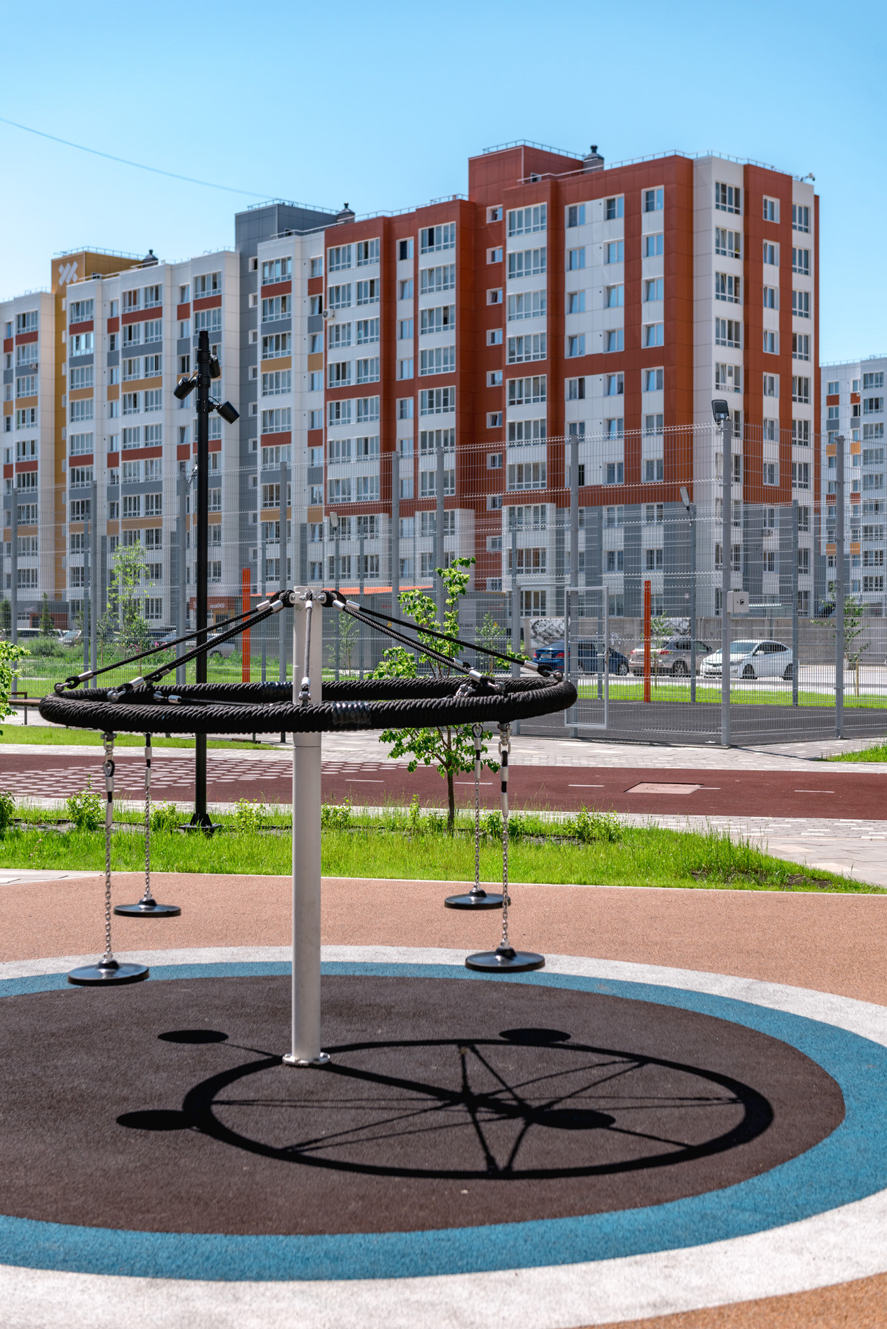 Дом окружён развитой инфраструктурой, включающей в себя школу, детский сад, торговый центр, парк и фитнес-центр, что делает его идеальным местом для комфортной жизни. Для семей с детьми во дворе оборудованы детская и спортивная площадки, а также предусмотрены удобства для парковки автомобилей.
