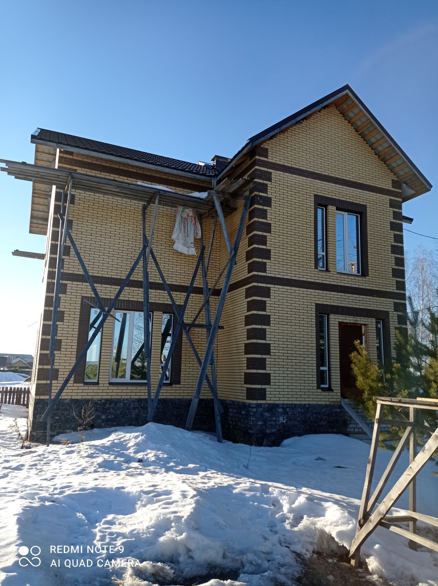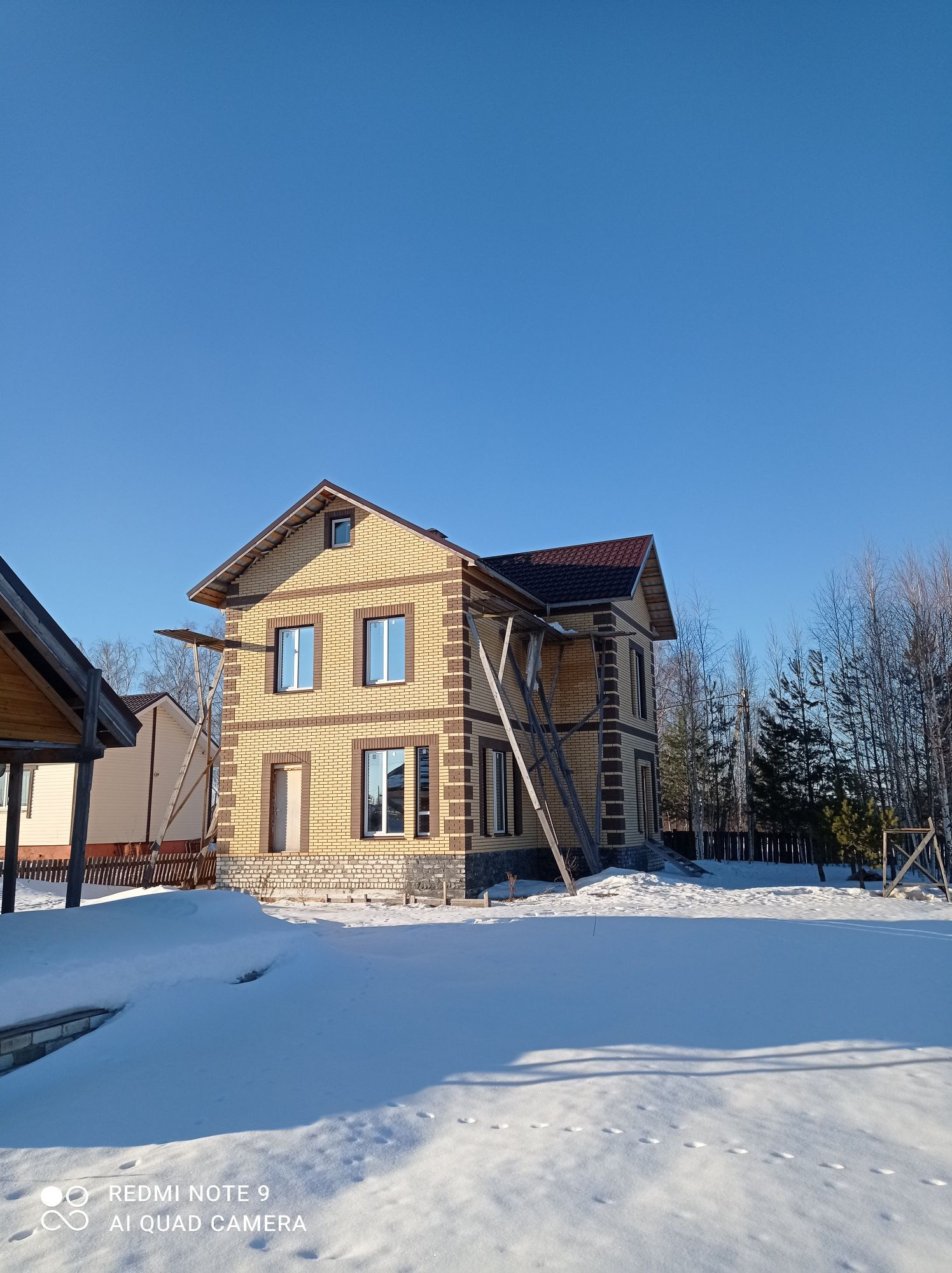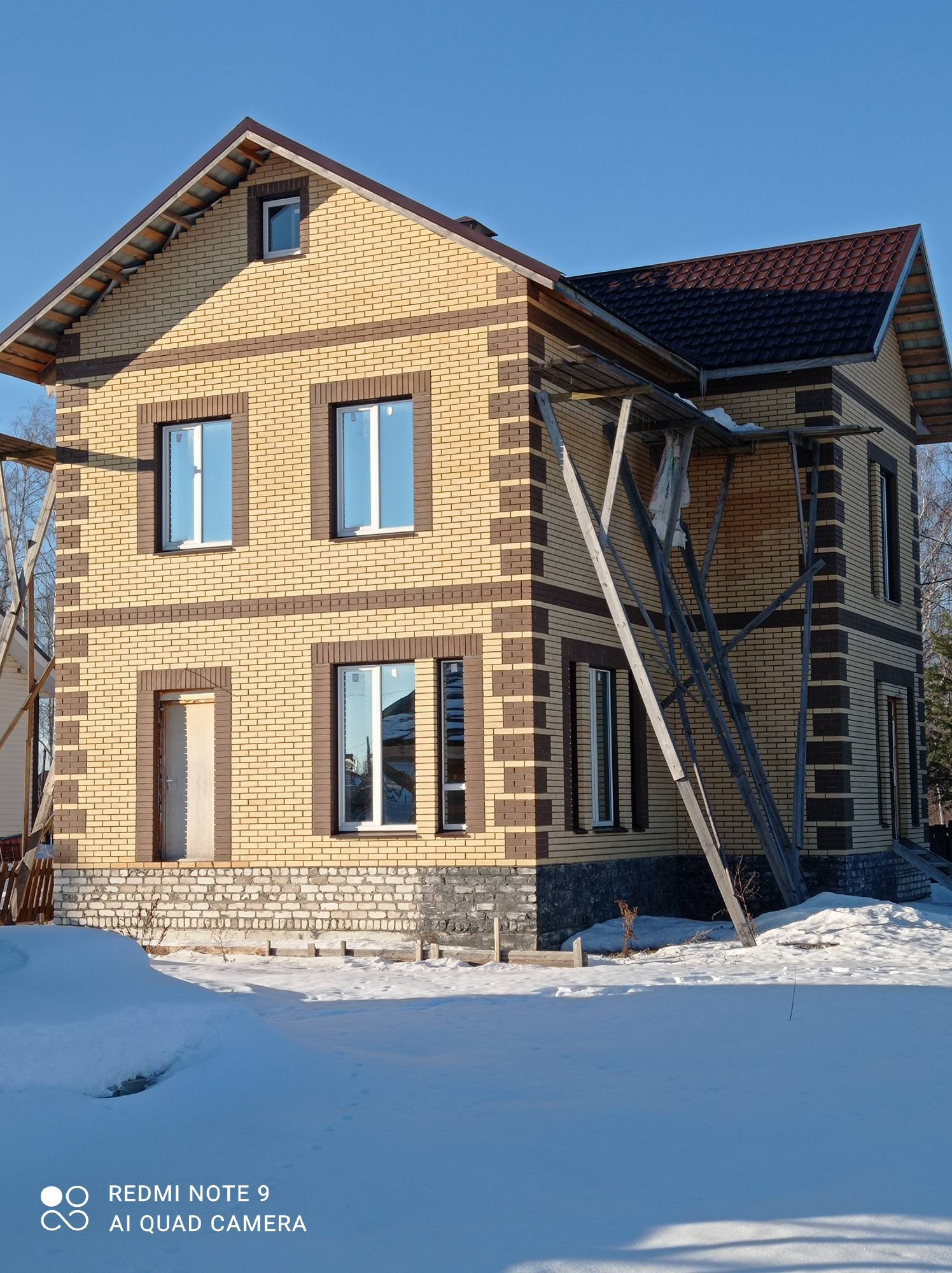 Дом исполнен из кварцевого газосиликата (толщиной стены 40 см.) фирмы "Poritep" и облицован керамическим кирпичом "Керма", с соблюдением (ГОСТа). Залит армированный бетонный пояс на каждом этаже, с утеплением. Дом полностью электрофицирован, газ подведен до пуска (с открытием лицевого счета на нового собственника), водопровод центральный (отличный напор), своя канализация в доме на 11 куб. м., что удешевит расходы. Все межкомнатные перегородки смонтированы по уровню и проекту. Все межэтажные перекрытия смонтированы ж/б плитами, и соответствуют пожарной безопасности. Стены отштукатурены "под финиш", готовы для поклейки обоев. Полы на обоих этажах выровнены бетонной стяжкой.