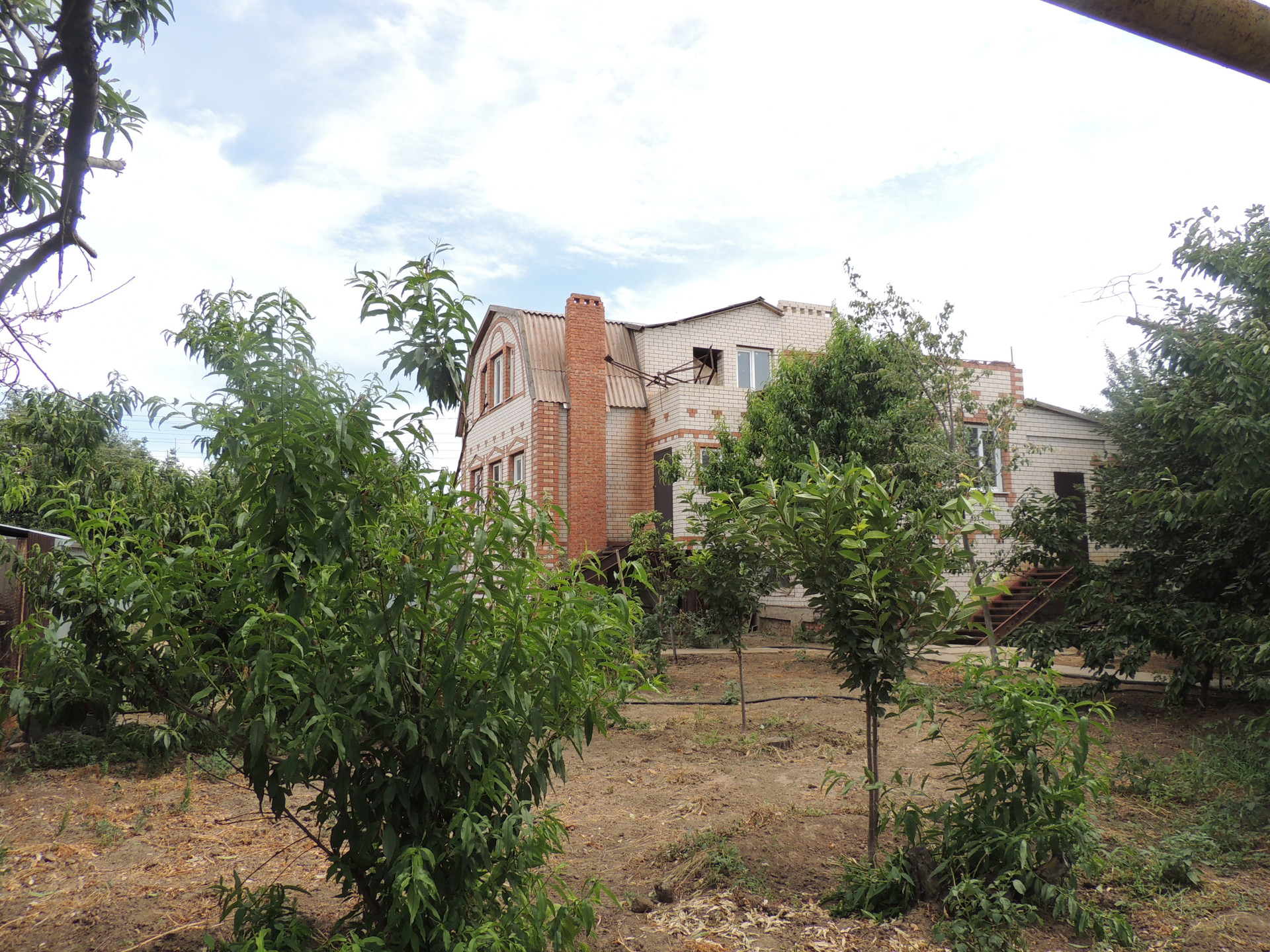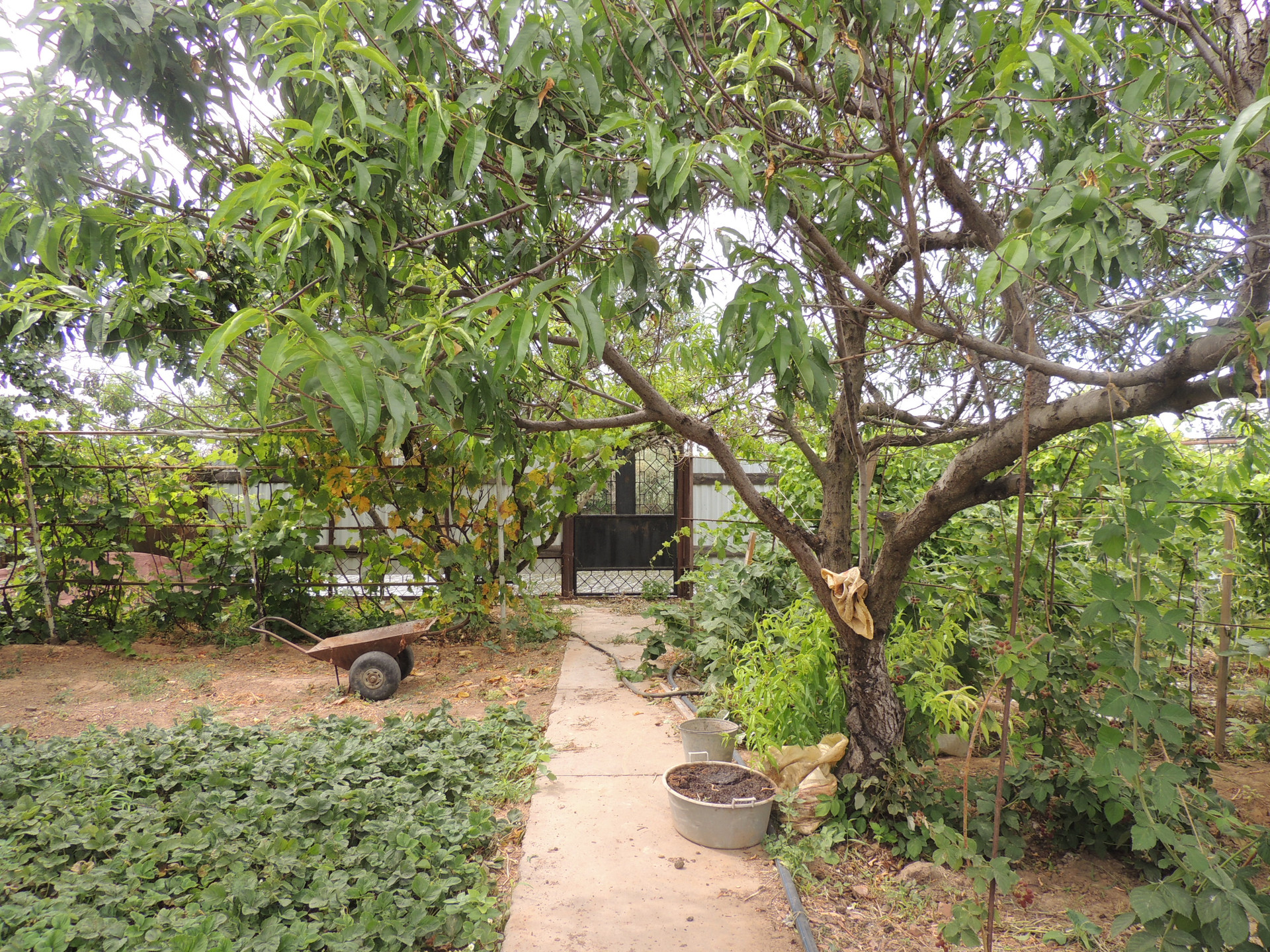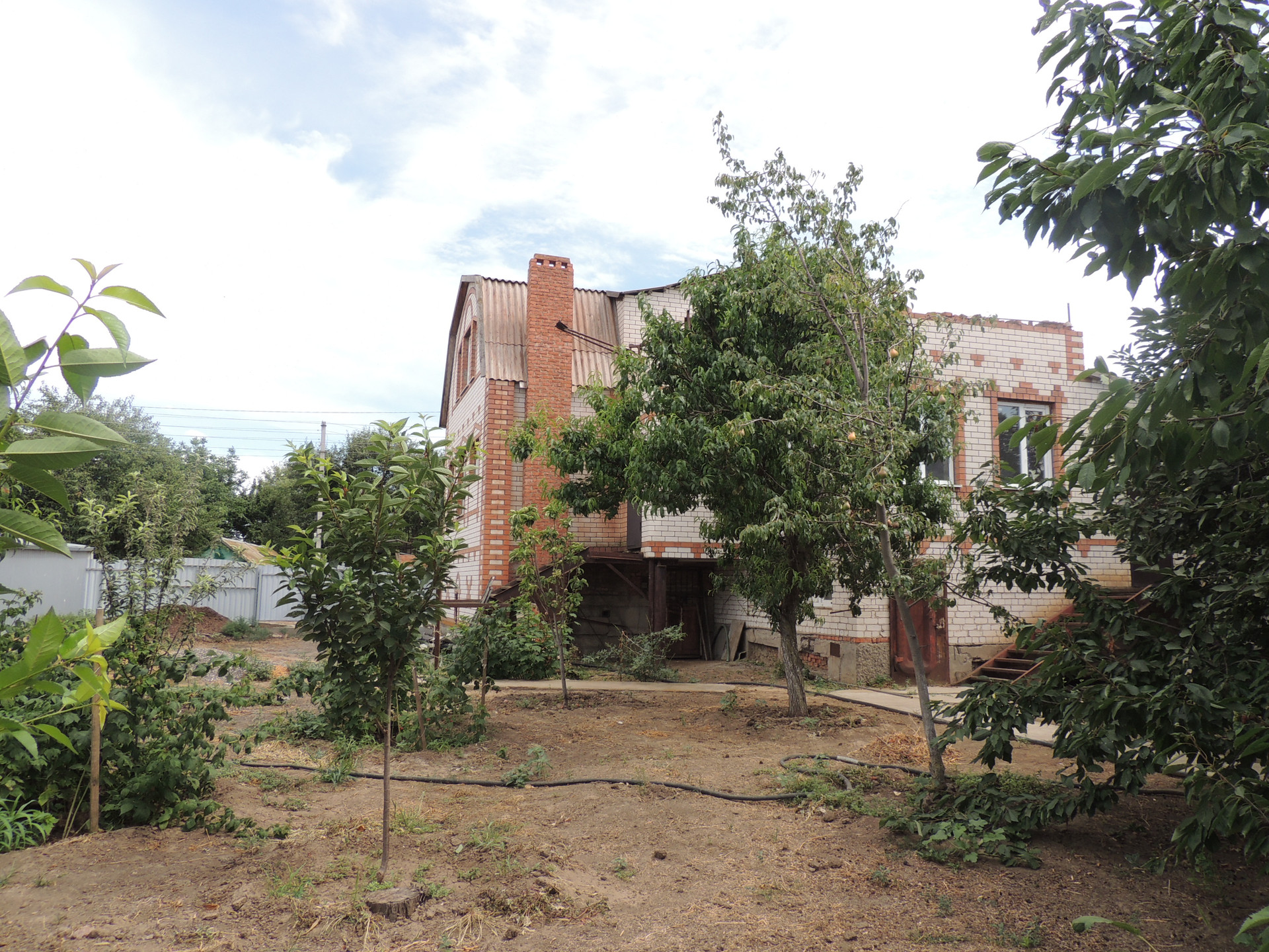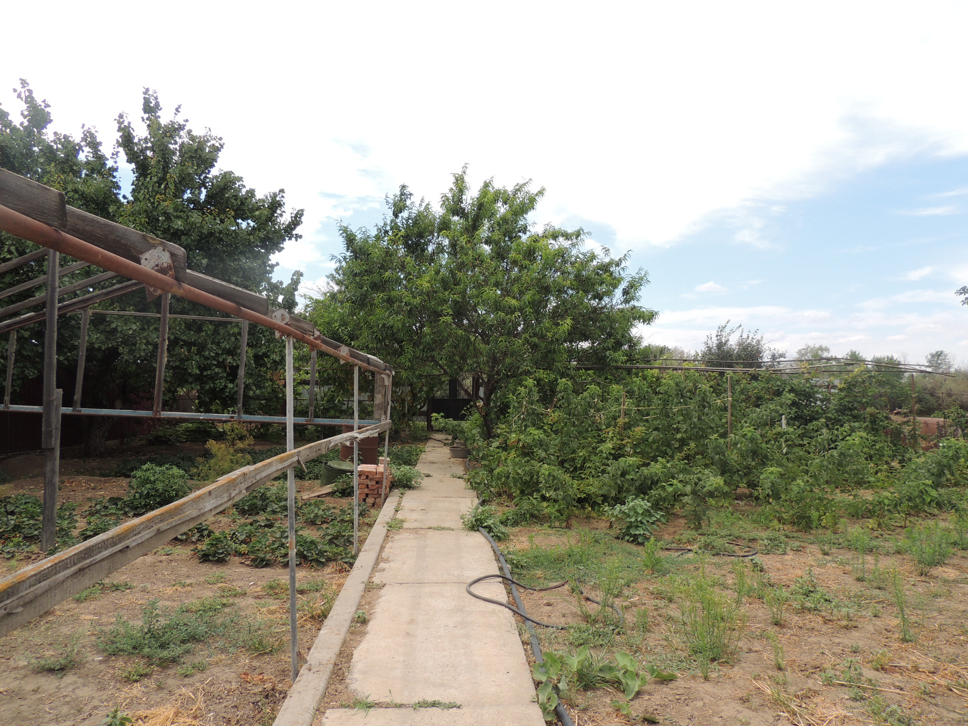 Участок ухоженный, бетонированные дорожки, насаждён плодовыми деревьями (вишня, груша, орех, яблоки, персики и др.) и кустарниками. На участке есть теплицы. Забор из металлопрофиля.