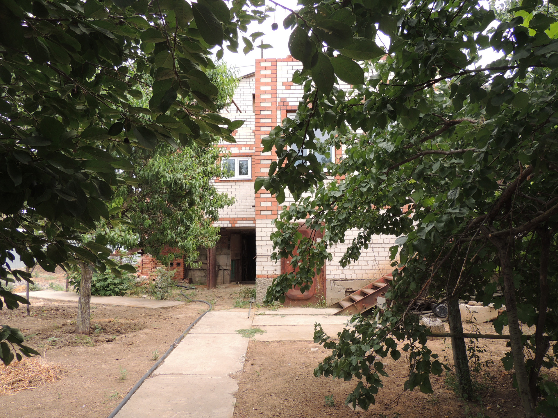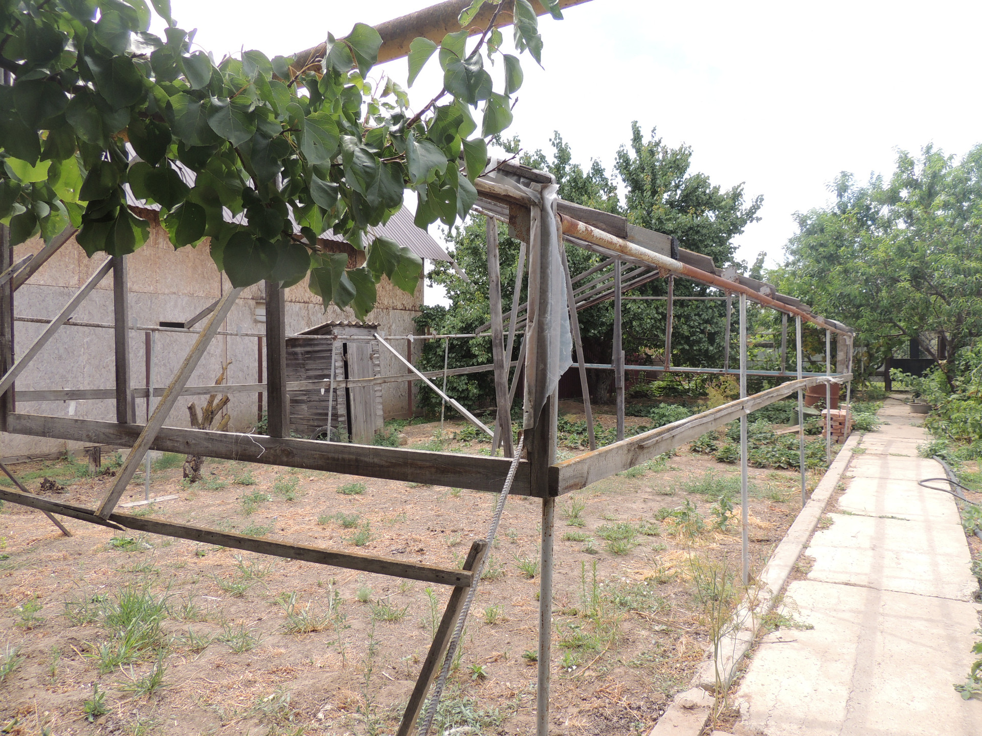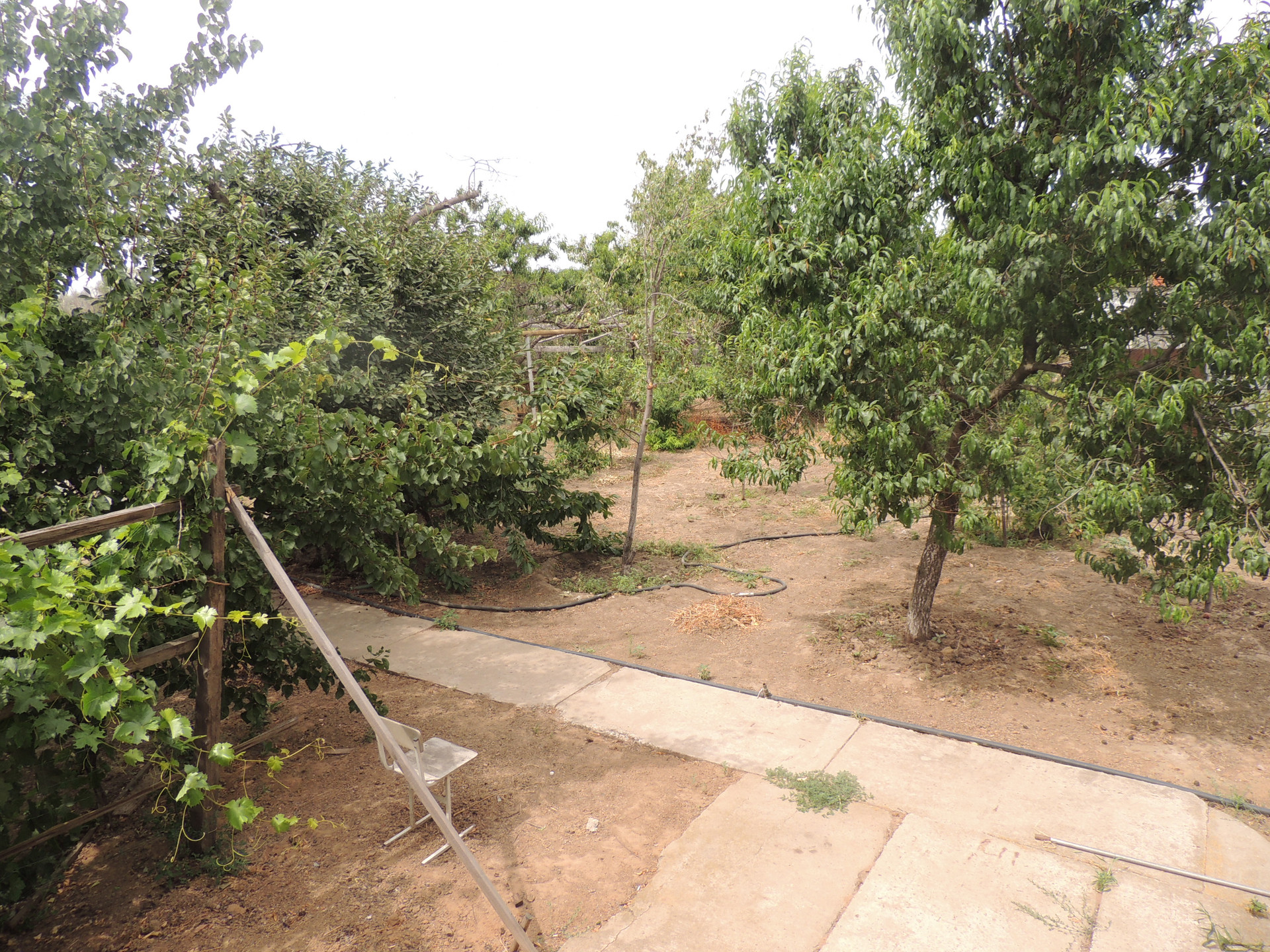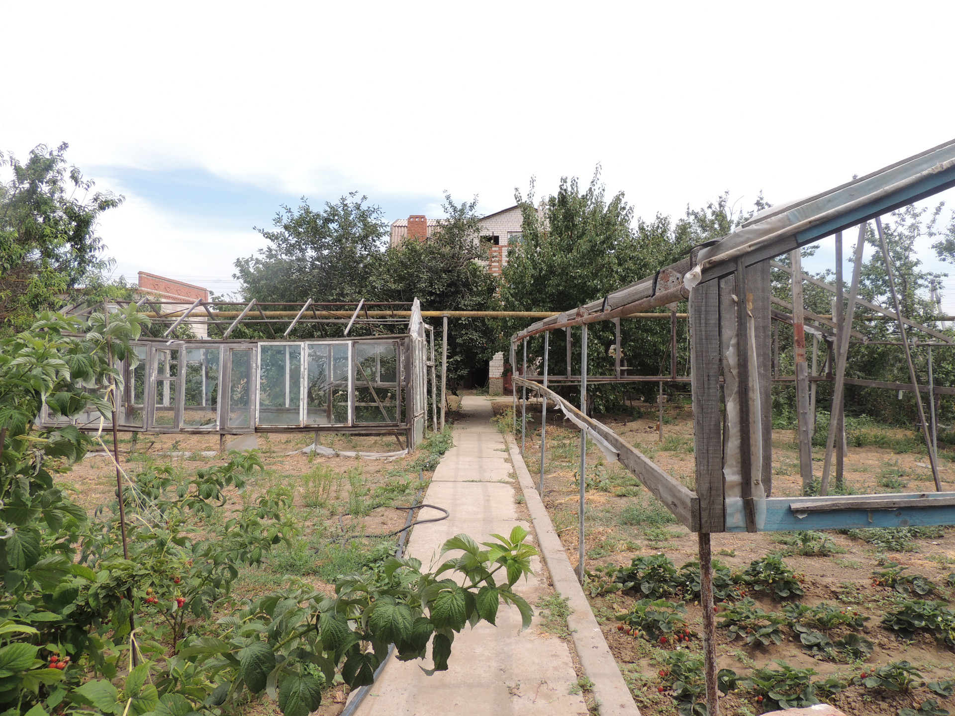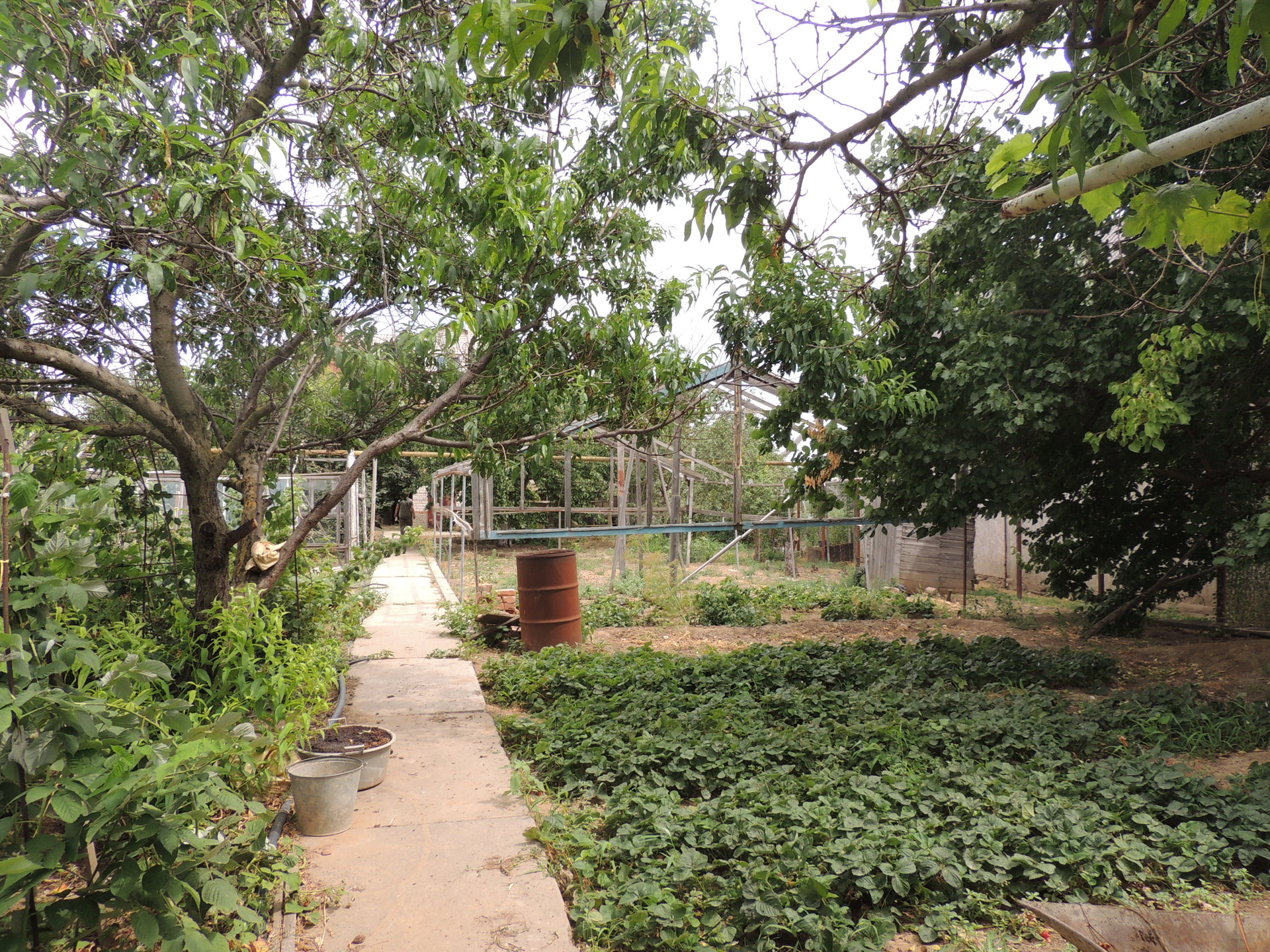 Участок ухоженный, бетонированные дорожки, насаждён плодовыми деревьями (вишня, груша, орех, яблоки, персики и др.) и кустарниками. На участке есть теплицы. Забор из металлопрофиля.