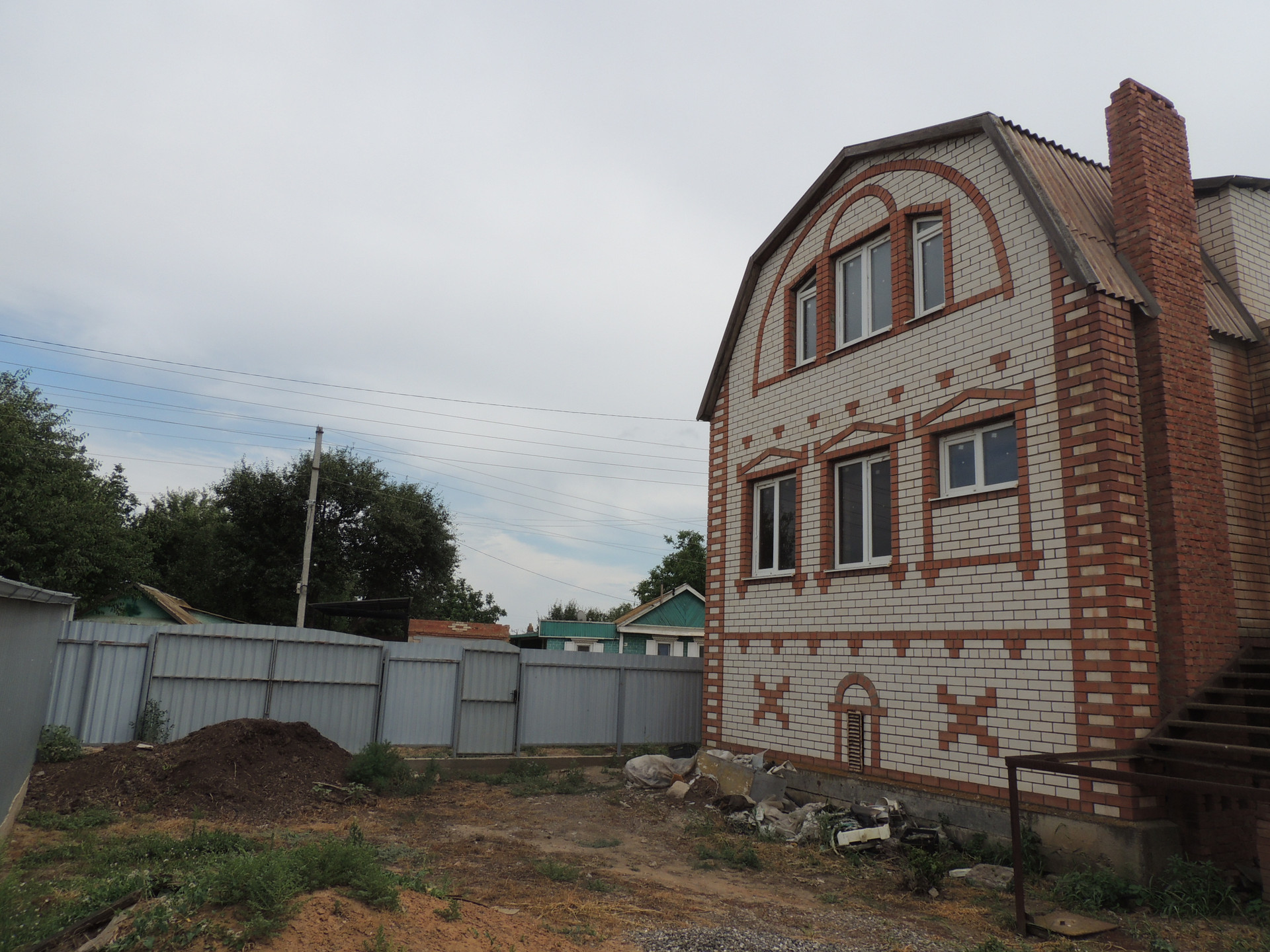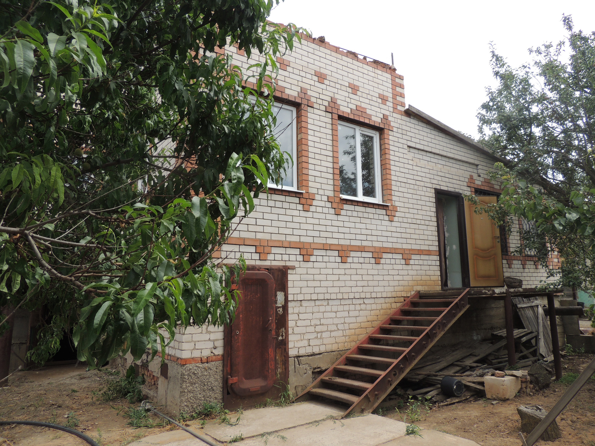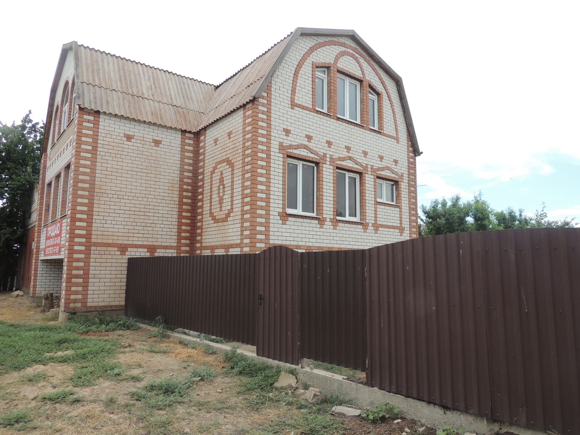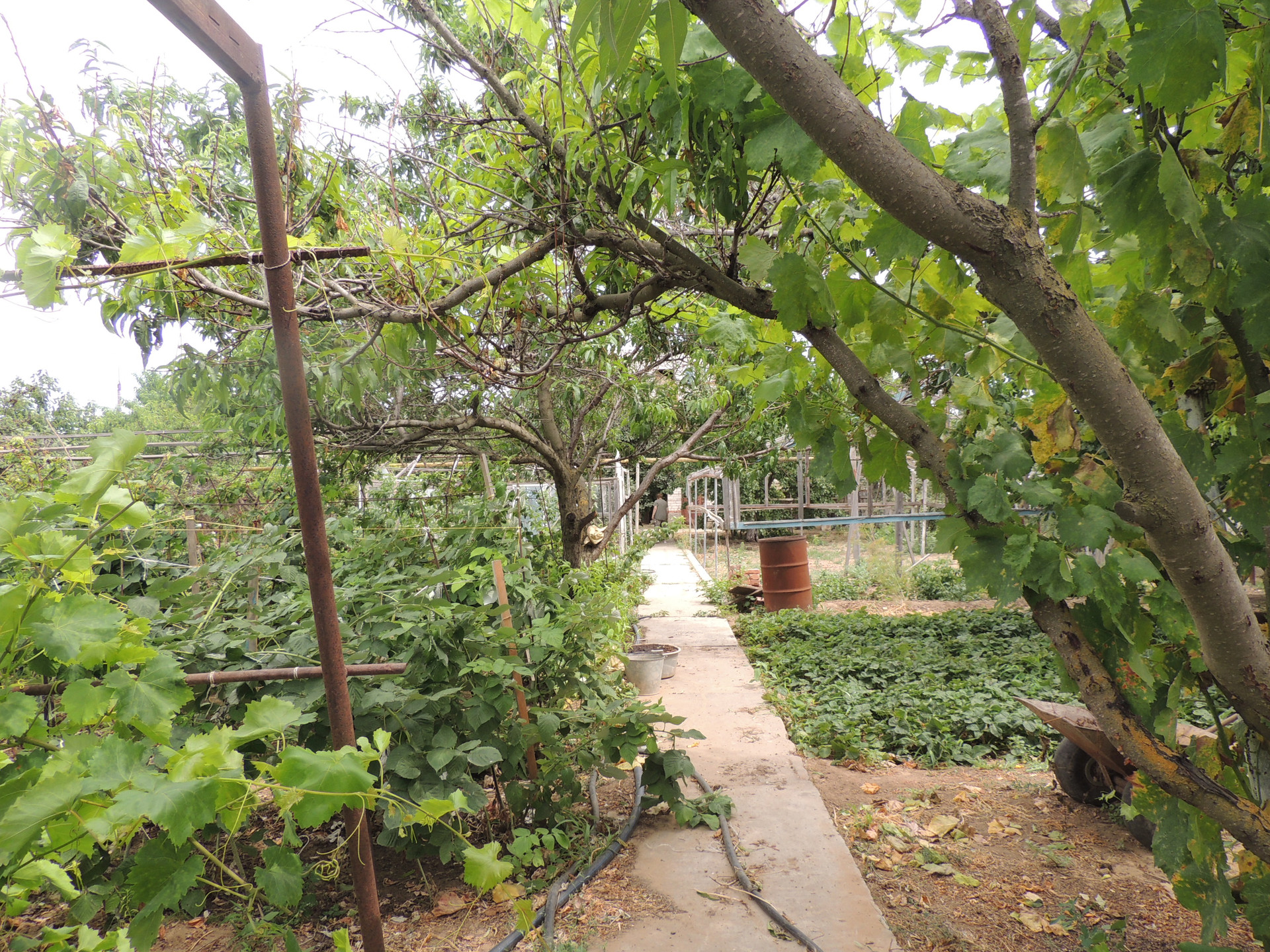 Участок ухоженный, бетонированные дорожки, насаждён плодовыми деревьями (вишня, груша, орех, яблоки, персики и др.) и кустарниками. На участке есть теплицы. Забор из металлопрофиля.
