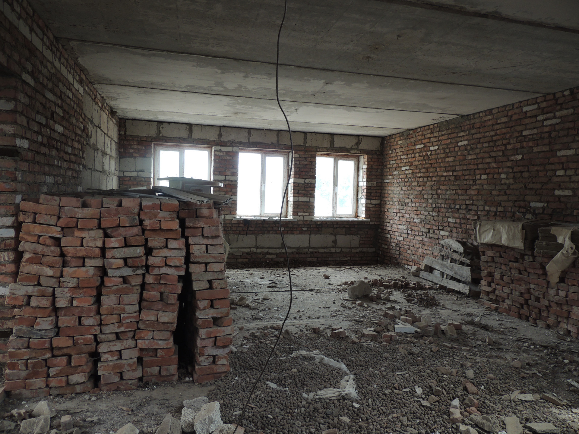 На берегу реки Бертюль продам 2-этажный недостроенный кирпичный дом в рп. Красные Баррикады на ул. Ленина.