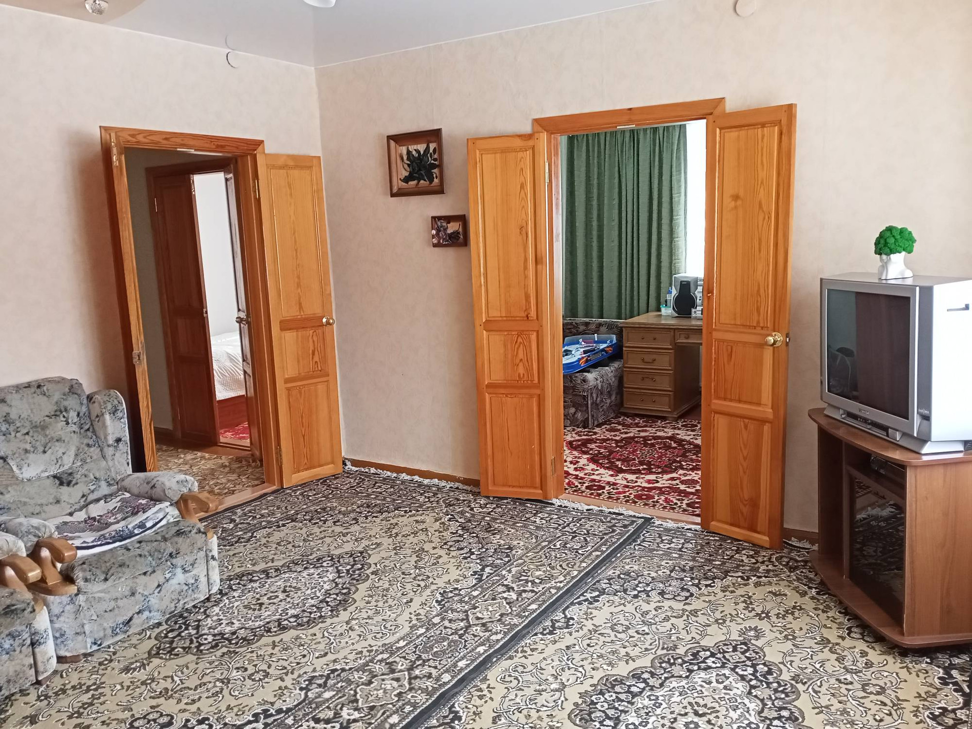 В доме имеются 4 комнаты, вместительная кухня-гостиная, санузел, прихожая; установлен газовый котел, газовая колонка, сплит-система, натуральные межкомнатные двери и современные деревянные окна. Канализация, слив, свет, газ в доме. На территории представлена замечательная добротная беседка для всей семьи, баня, надворные постройки и вместительный гараж. Летом можно вкусить плоды черешни, яблони, винограда.