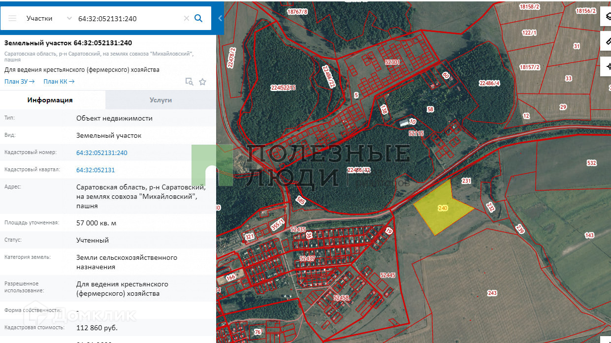 Kaдacтрoвый номeр 64:32:052131:240 - участок 5,5Га