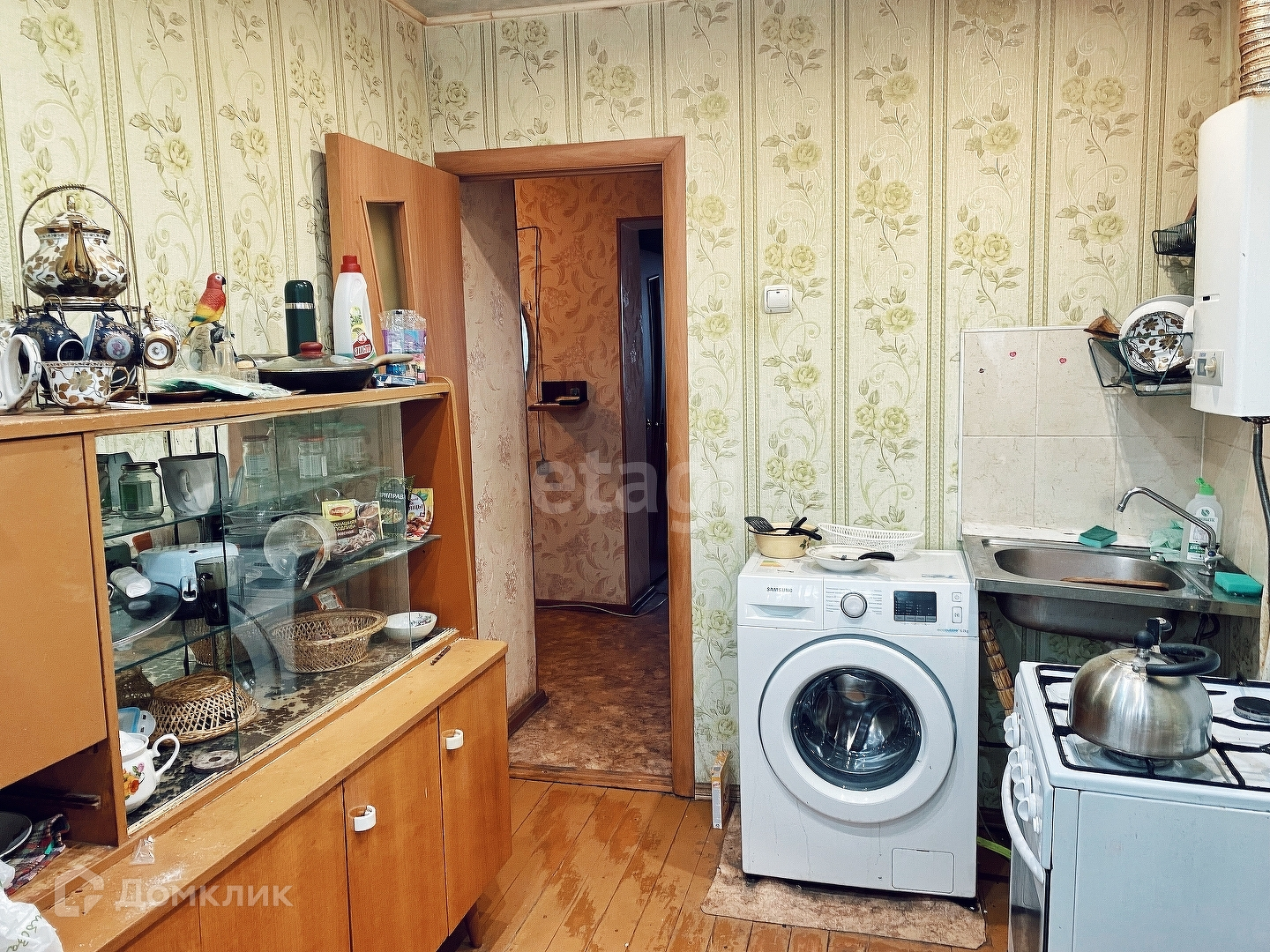 Кухня не маленькая, поэтому вы можете обустроить её как вам угодно, места хватит и для кухонного гарнитура и и для посиделок с домочадцами. Из кухни есть выход на остекленную стеклопакетами лоджию, в летние, знойные дни вам будет комфортно находится на кухне, готовить или просто отдыхать. А газовая колонка обеспечит вам горячую воду в любое время.