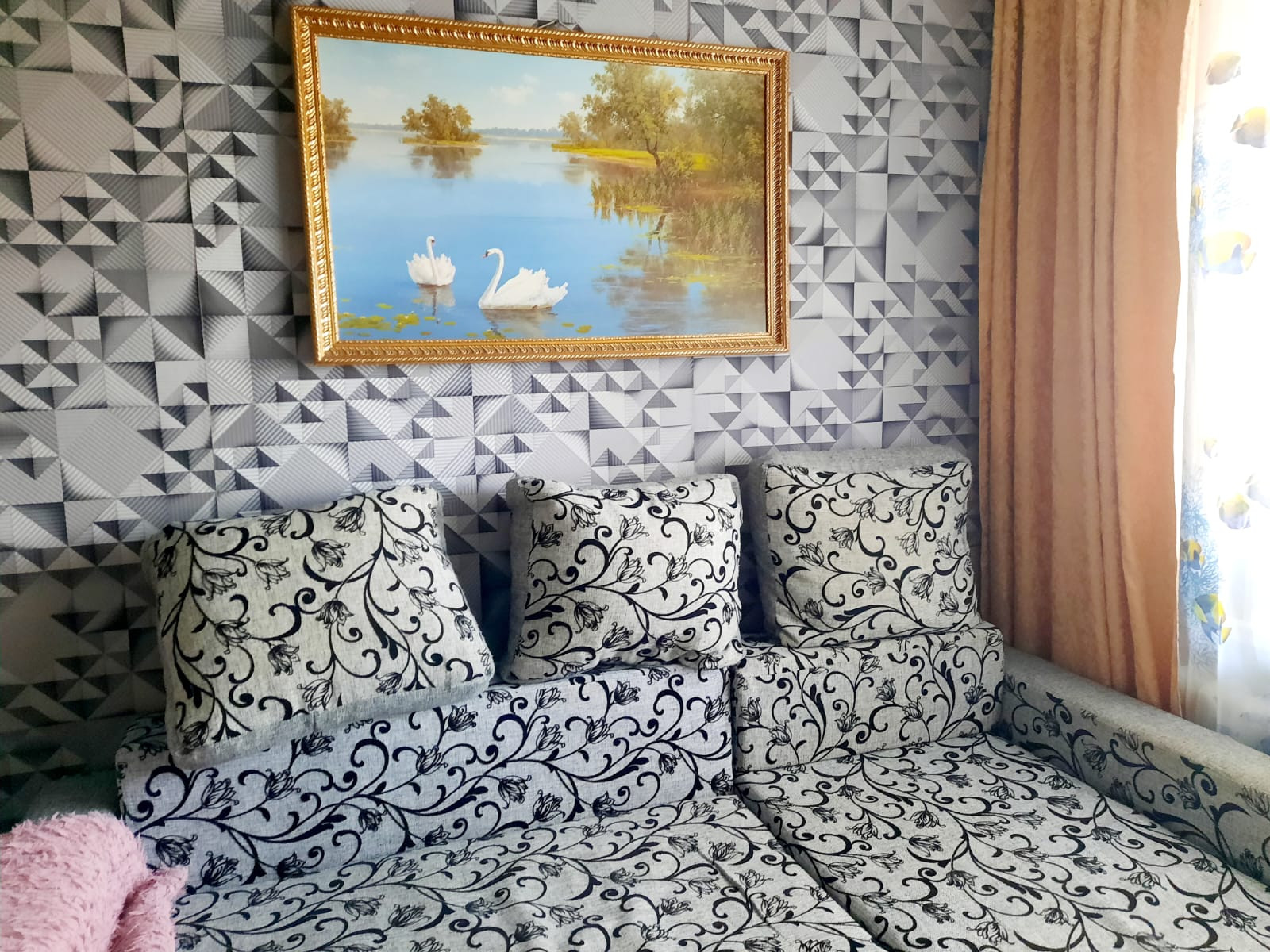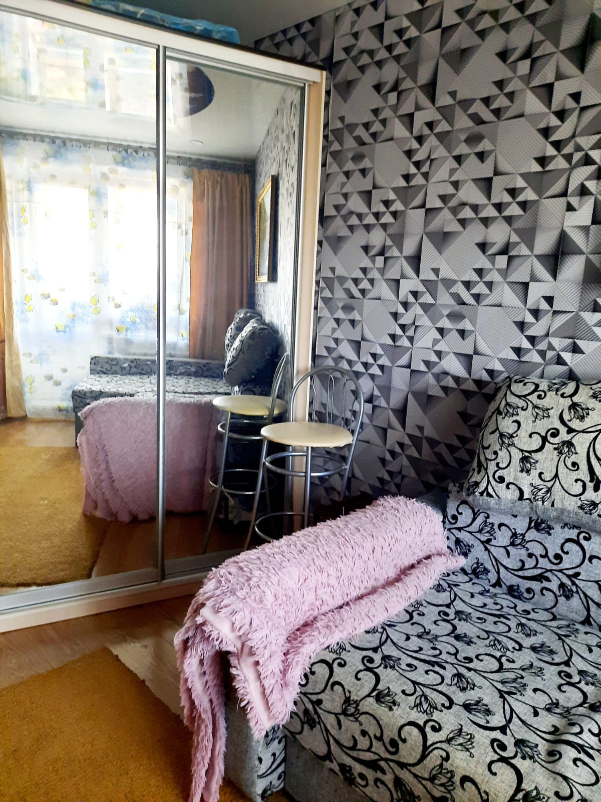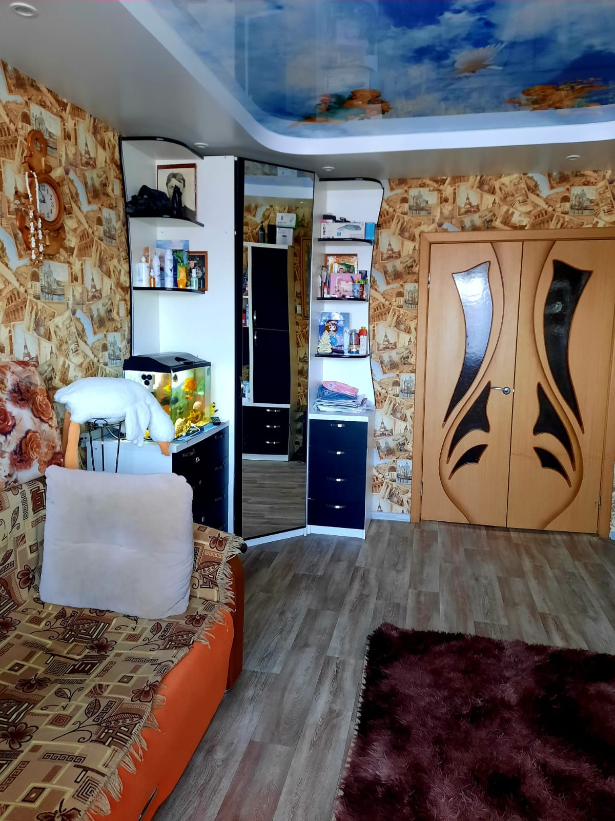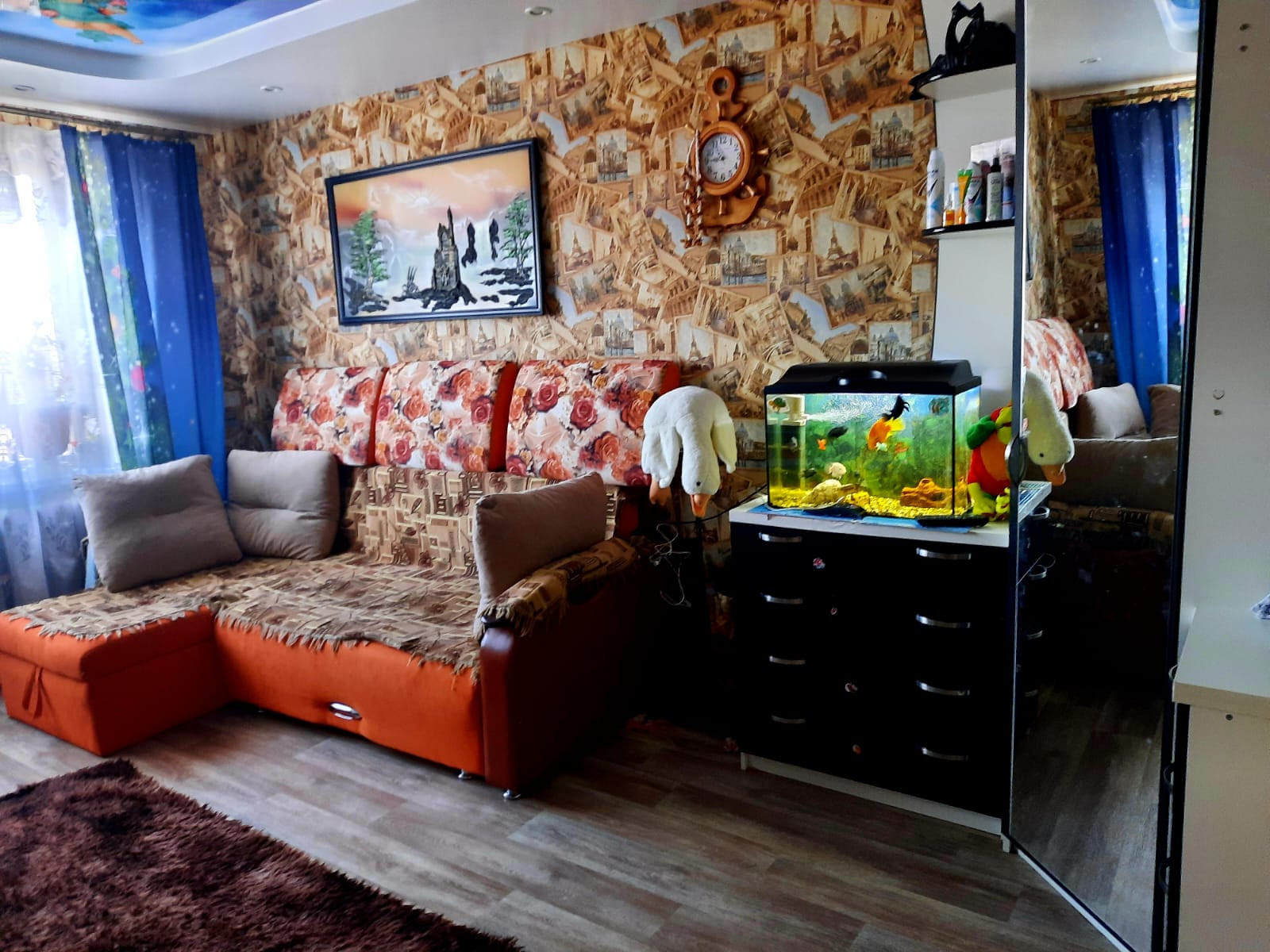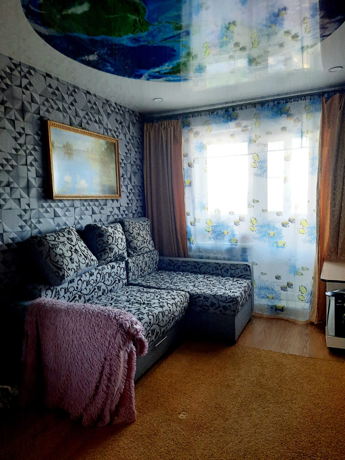 Качественный, с использованием современных материалов ремонт.Стеклопакеты, натяжной потолок, качественные двери.