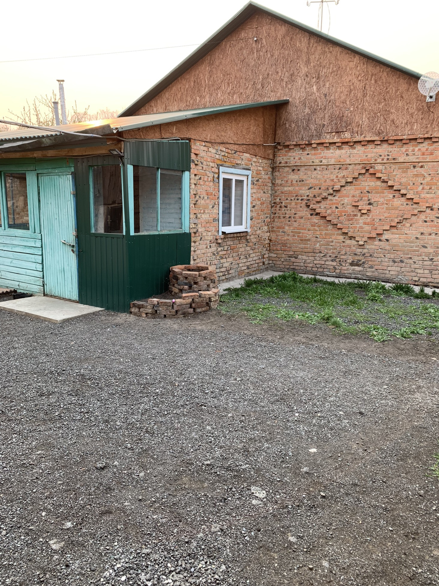 Подъезд к дому и ограда отсыпаны асфальтной крошкой. Перед домом большая поляна с детской игровой площадкой.