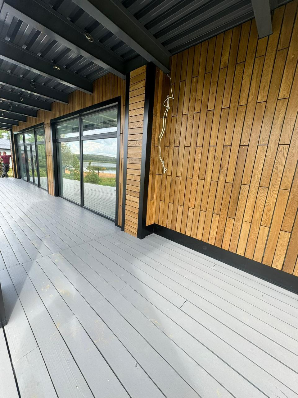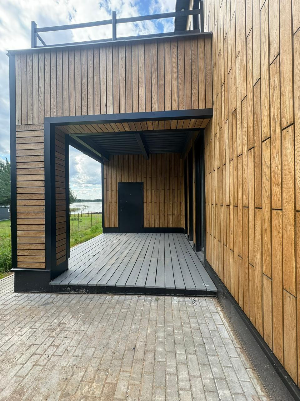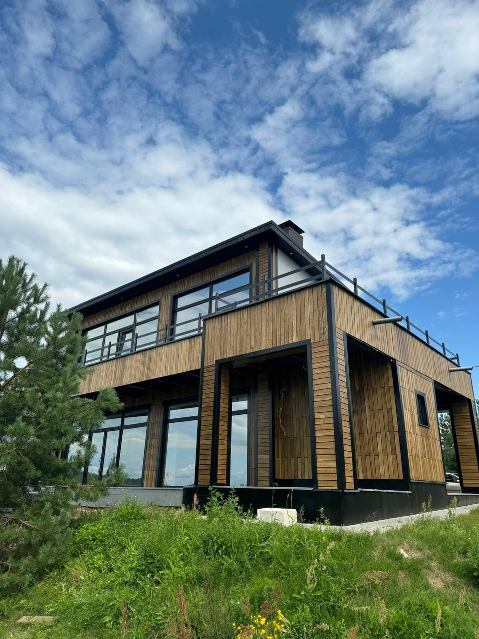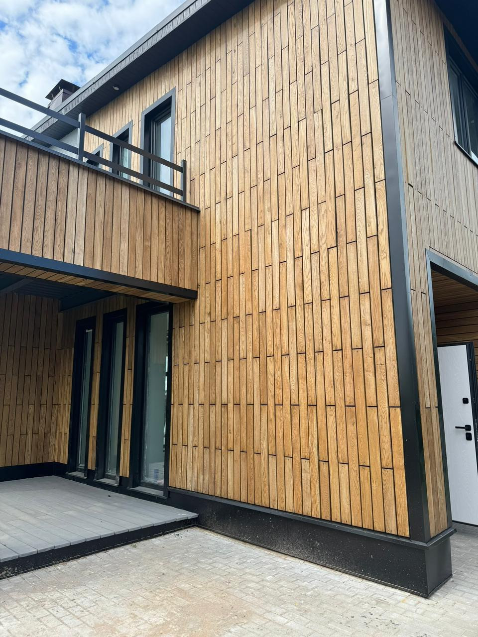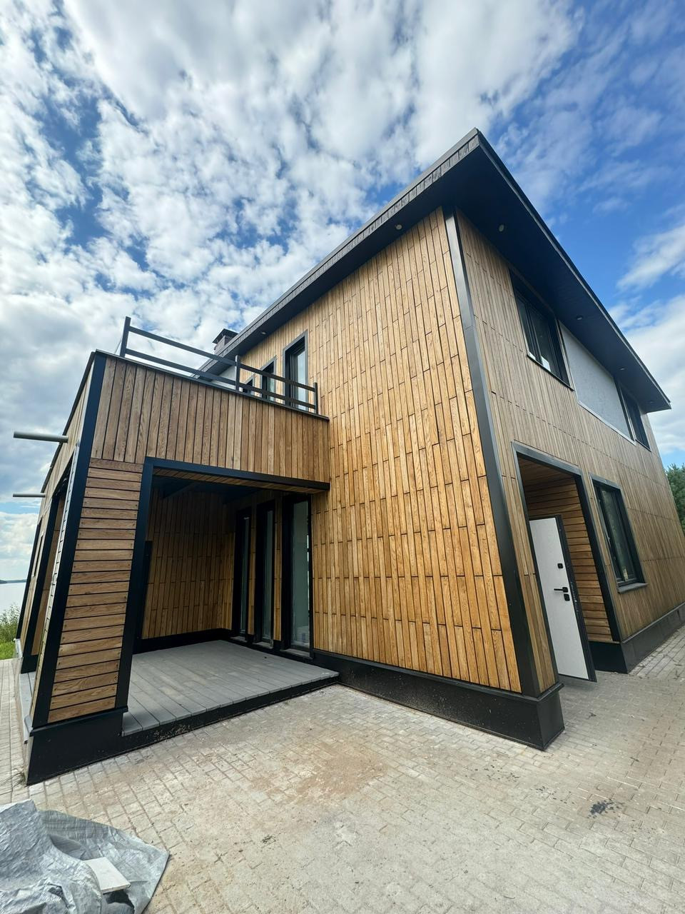 Дом из кирпича ,стены снаружи покрыты премиальным материалом из дуба ,плитка Италия ,потолки гипсокартон с покраской , а не натяжная химия.