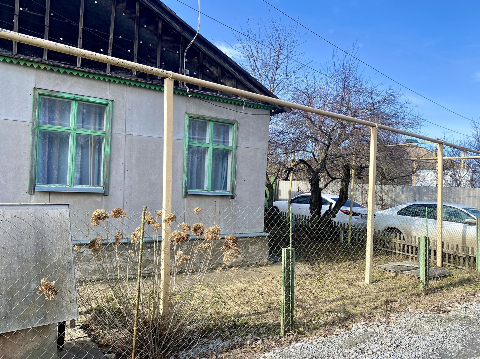Перед домом есть возможность поставить 2 машины, во дворе есть гараж с погребом и 3 сарая, территория огорода не огорожена забором.