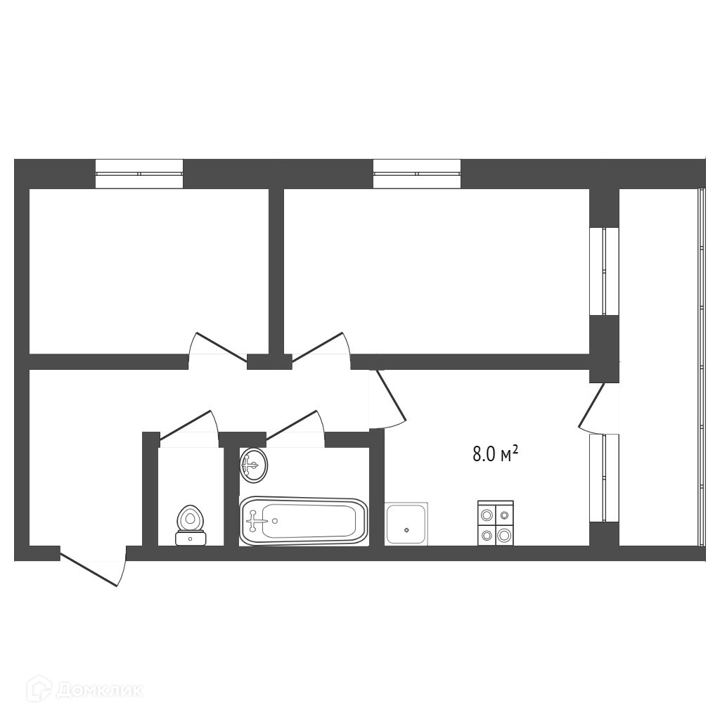 2-комнатная квартира, 45.1 м2, этаж 2 / 2, на продажу в рабочем посёлке Лесная Поляна, рабочий посёлок Лесная Поляна, 22