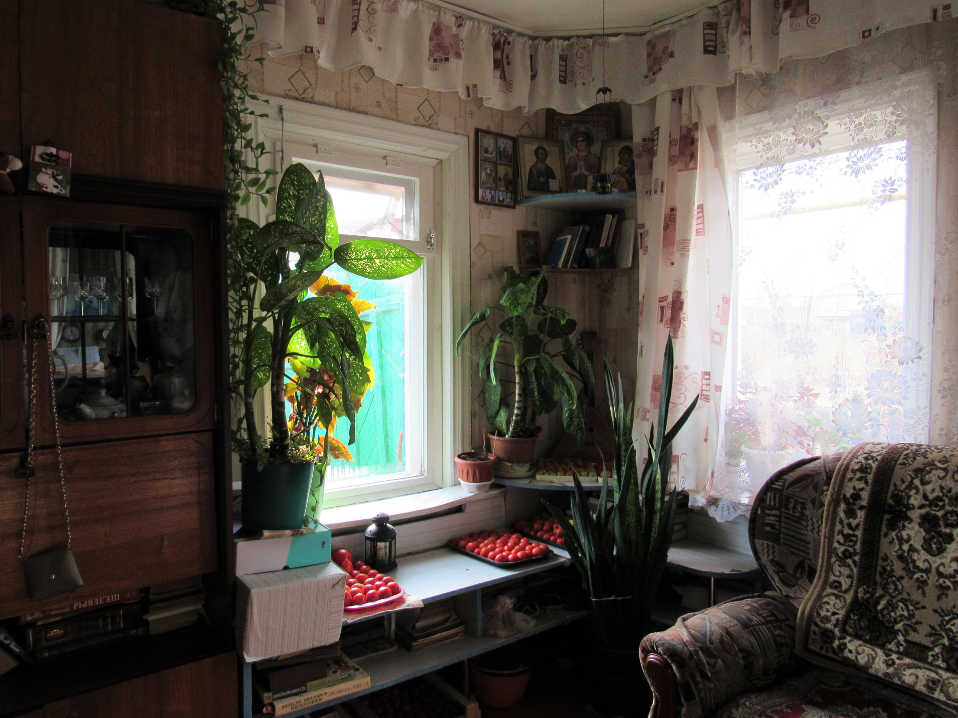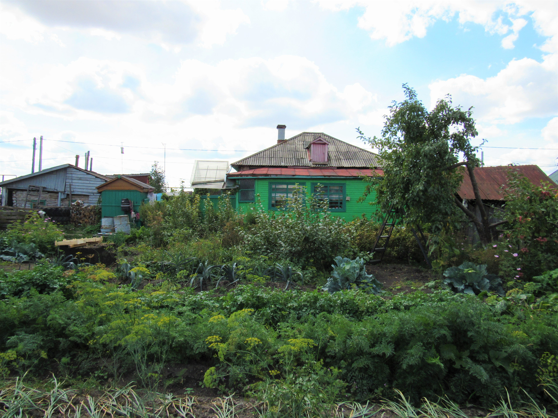 Имеется огород: декоративный пруд, 2 колодца для полива, четыре яблони, три из которых крупноплодные, несколько кустов черной и красной смородины, крыжовника, вишня, малина, липа.