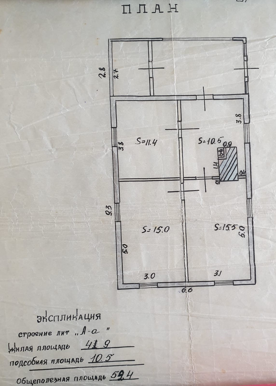Общая площадь 52 м2