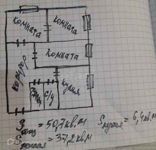 Общая площадь 50.7 м2