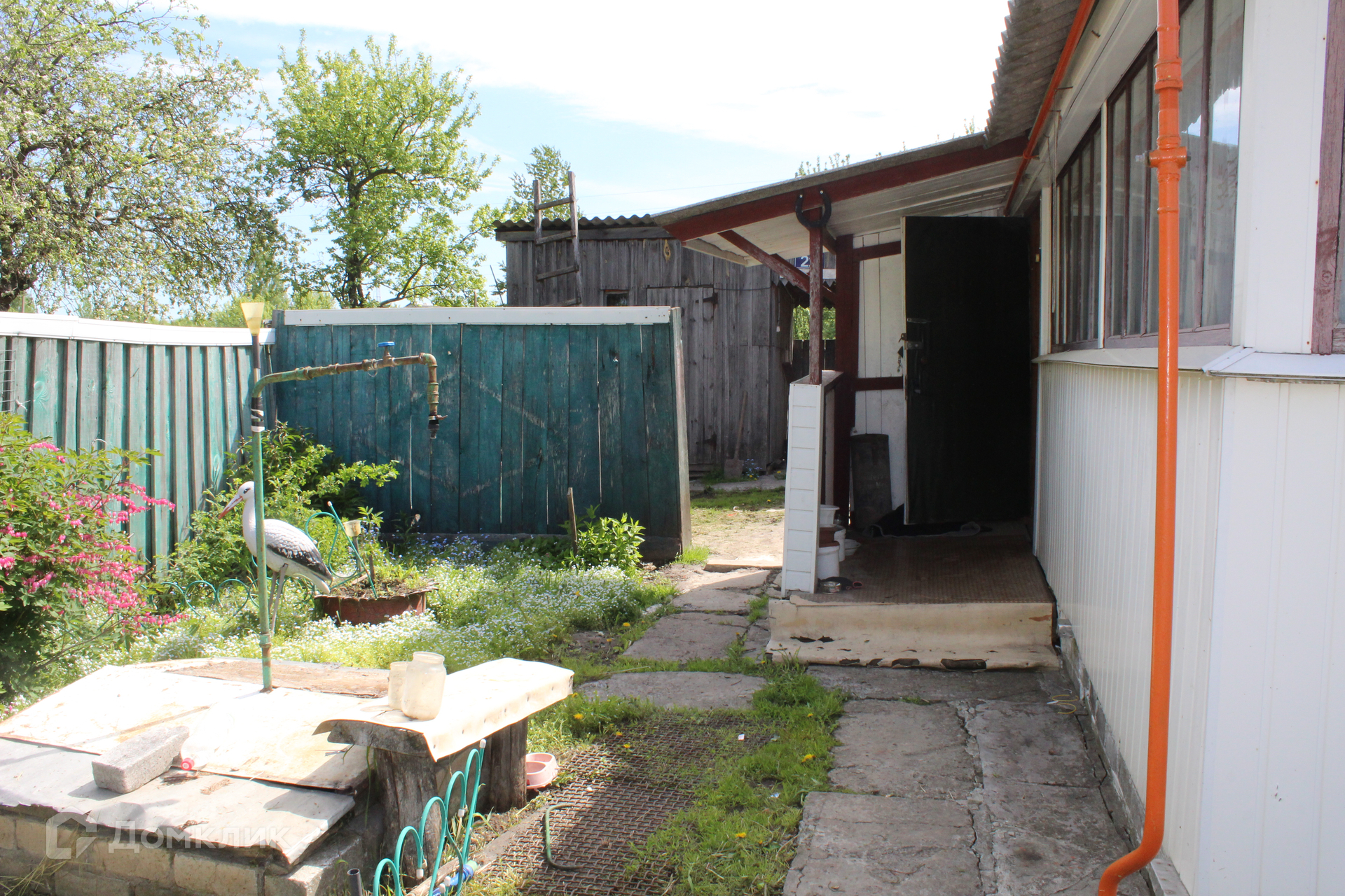 площадью 43 кв.м. В доме газ, вода, свет, местная канализация. Дом деревянный, обшит сайдингом. При продаже дома, остается вся мебель и бытовая техника, т.е. - заходи и живи!!!! Придомовая территория ухоженная, вся в цветах. Участок разработан, очень много плодово-ягодных насаждений. Также имеется во дворе своя колонка.