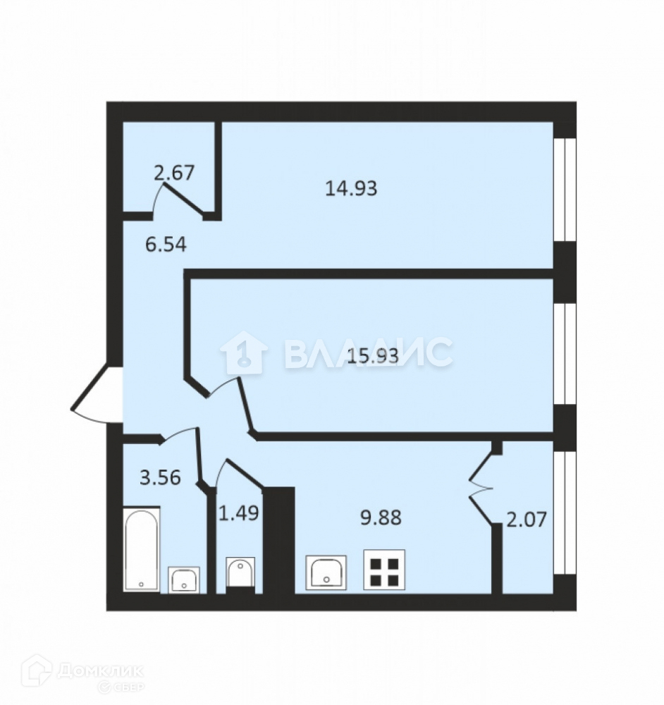 Две изолированные комнаты 15,93и 14,93 кв. м., кухня-10 кв. м.. раздельный санузел.