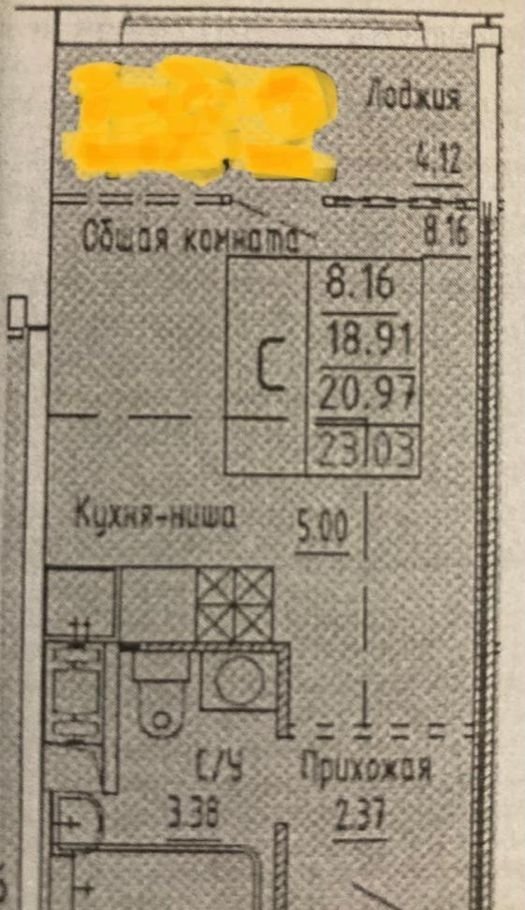 Общая площадь 23 м2