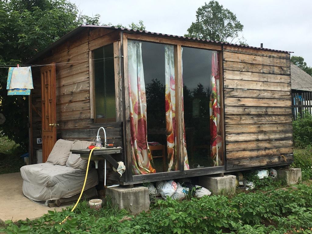 2. Для временного проживания был построен дом 32 м2. Каркасное строение. Отопление - электрическое, теплый пол. Спальная и кухонная зона, ванная, прихожая - все как в однокомнатной квартире.