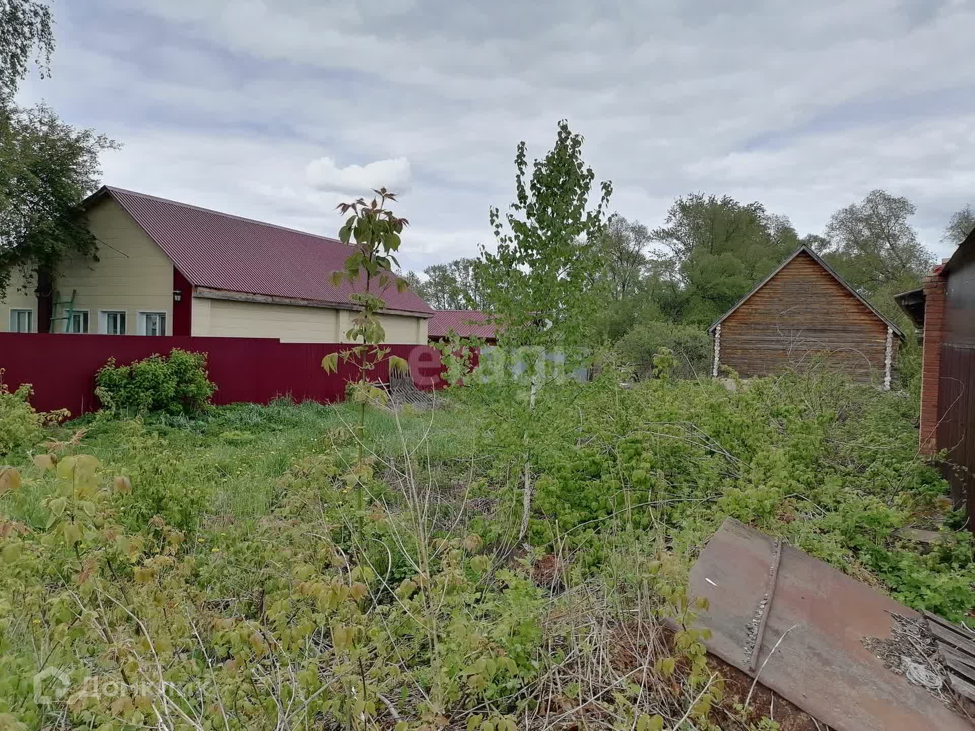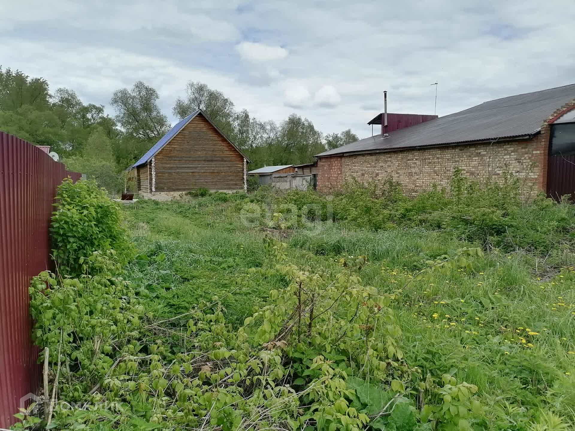 На участке расположен недостроенный дом, площадью 75 кв. м., материал стен - сосновый сруб, пол и потолок отсутствуют. Высота крыши позволяет обустроить мансардный этаж. Также на территории участка находится сруб для бани.