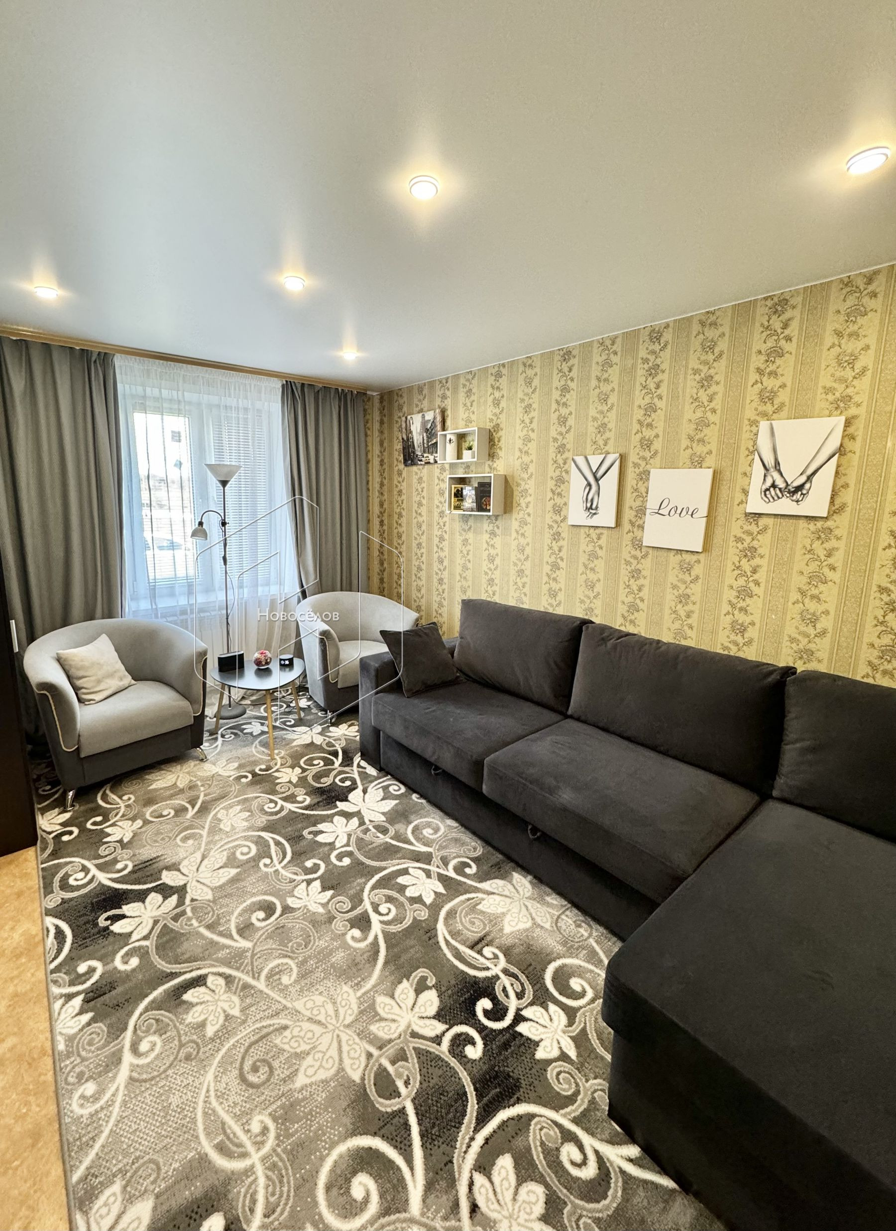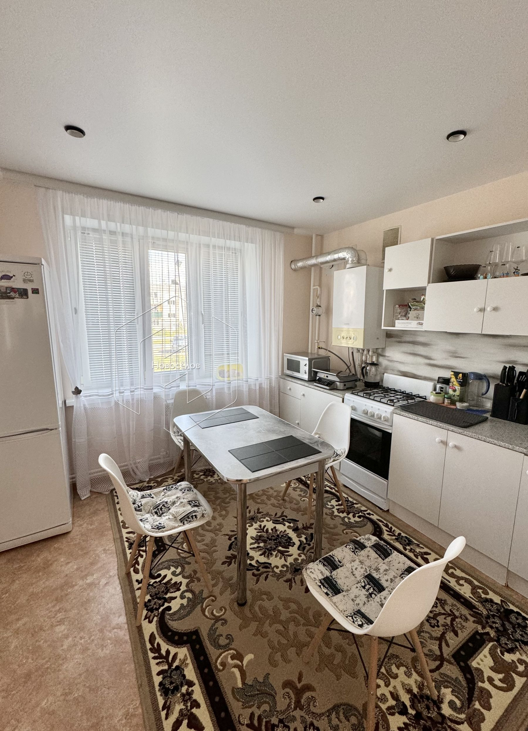 Просторная кухня-гостиная (15,6 кв.м) с двумя окнами.
