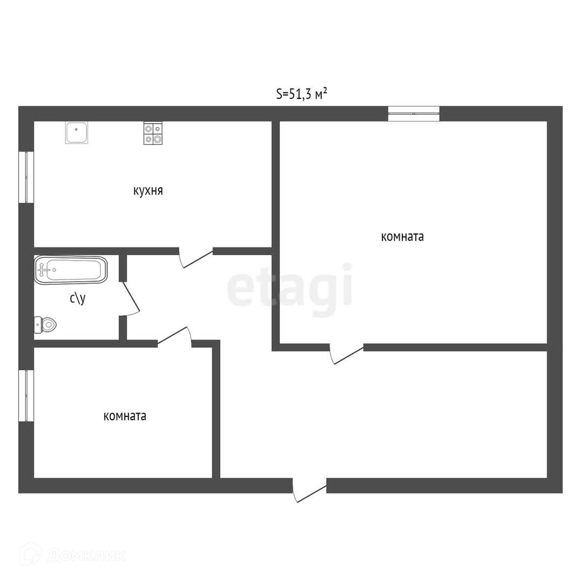 Площадь квартиры составляет 51,3 кв.м.