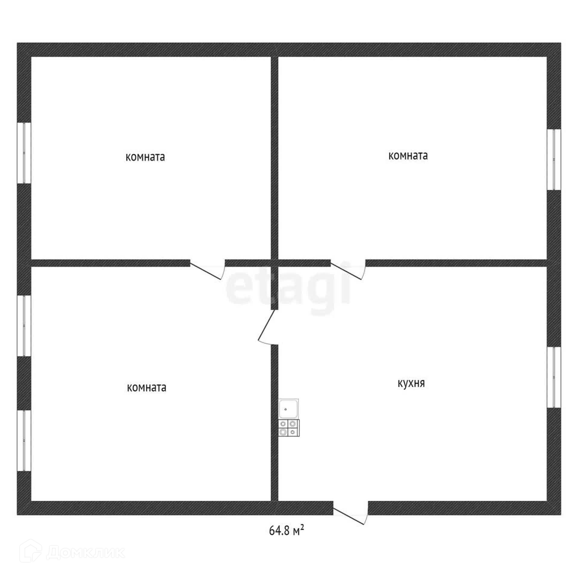 Общая площадь 64.8 м2
