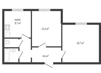 Общая площадь: 41.7 м2