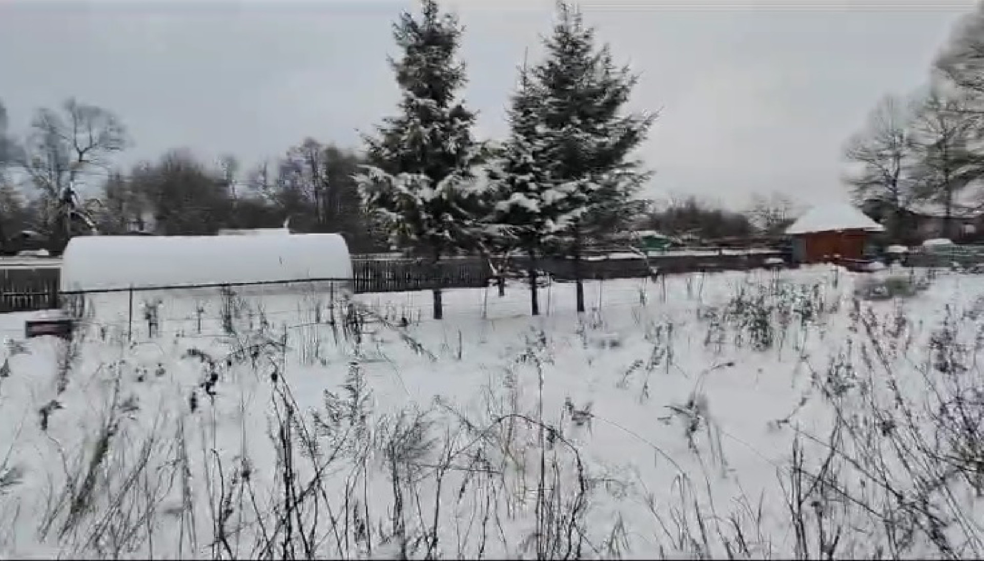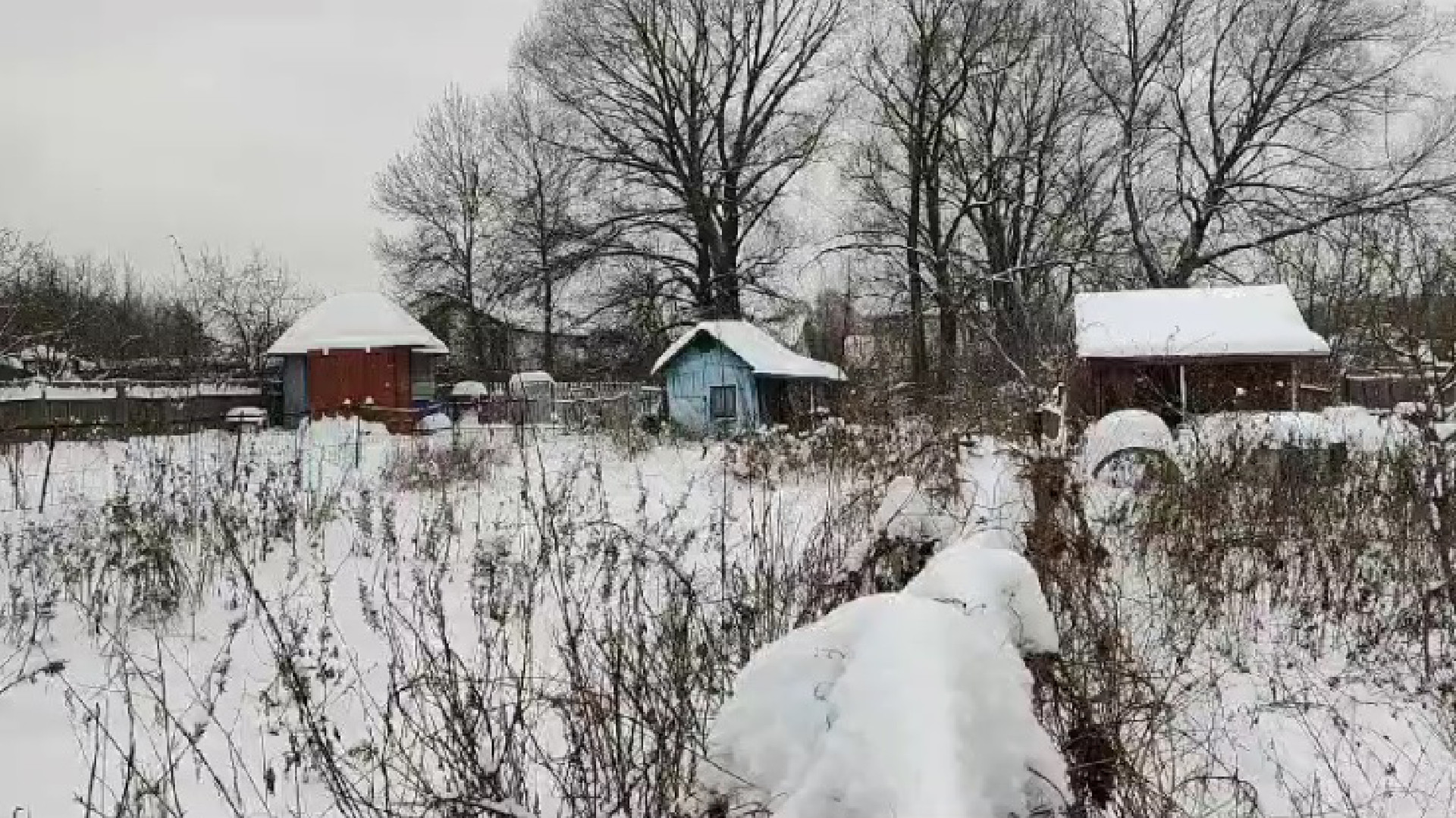 На участке стоит хозблок - может стать времянкой для строителей.