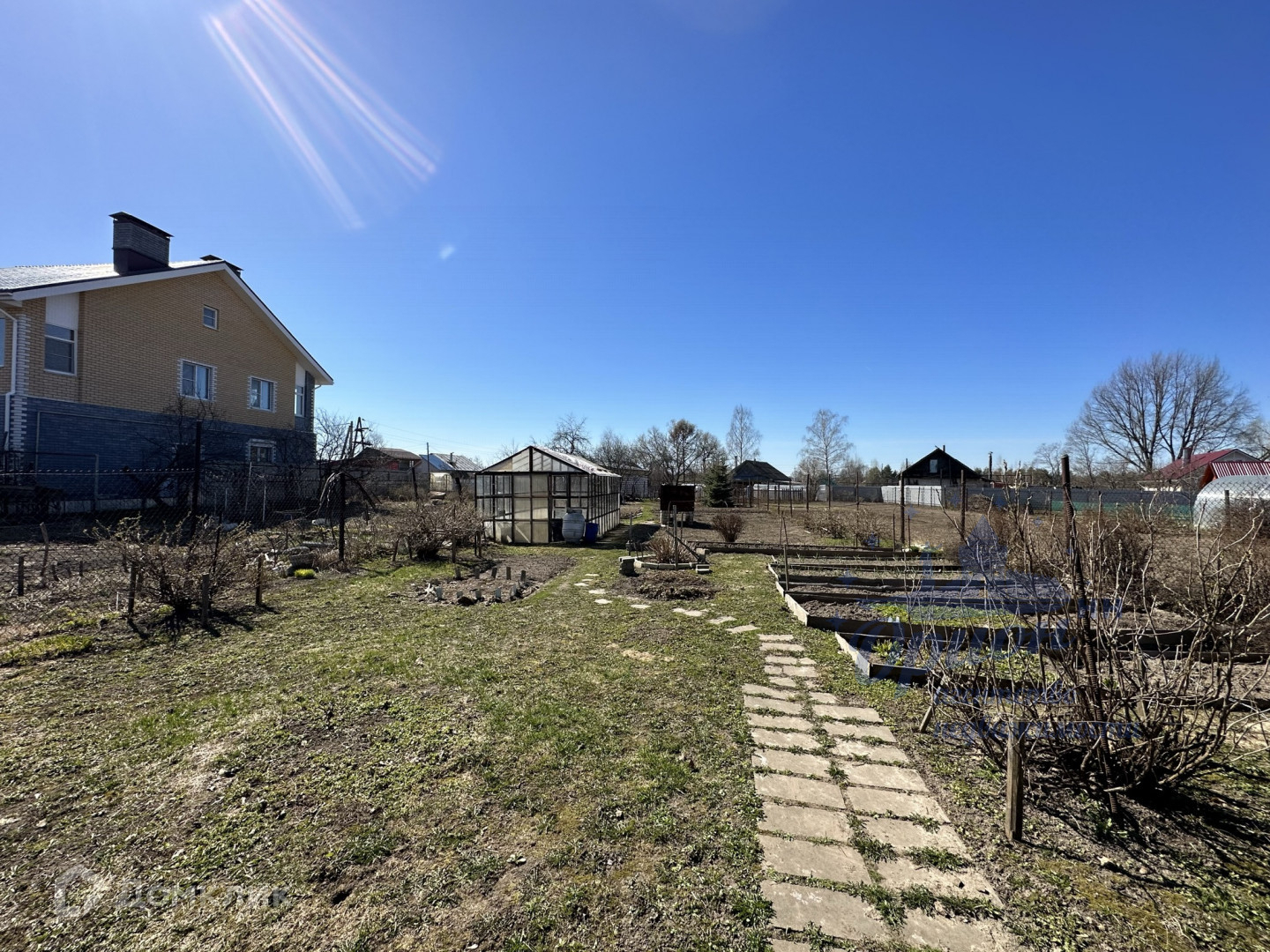 Земельный участок правильной геометрической формы, сухой и плодородный. Вместительная теплица и много солнечного света для хорошего урожая. Есть садик с плодовыми деревьями, малина. Дополнительно на участке построена беседка для отдыха и русская баня.