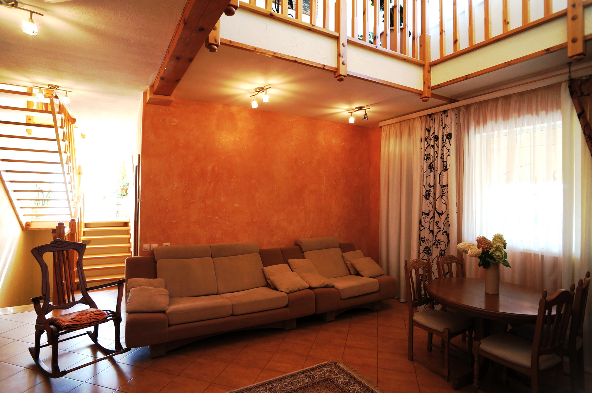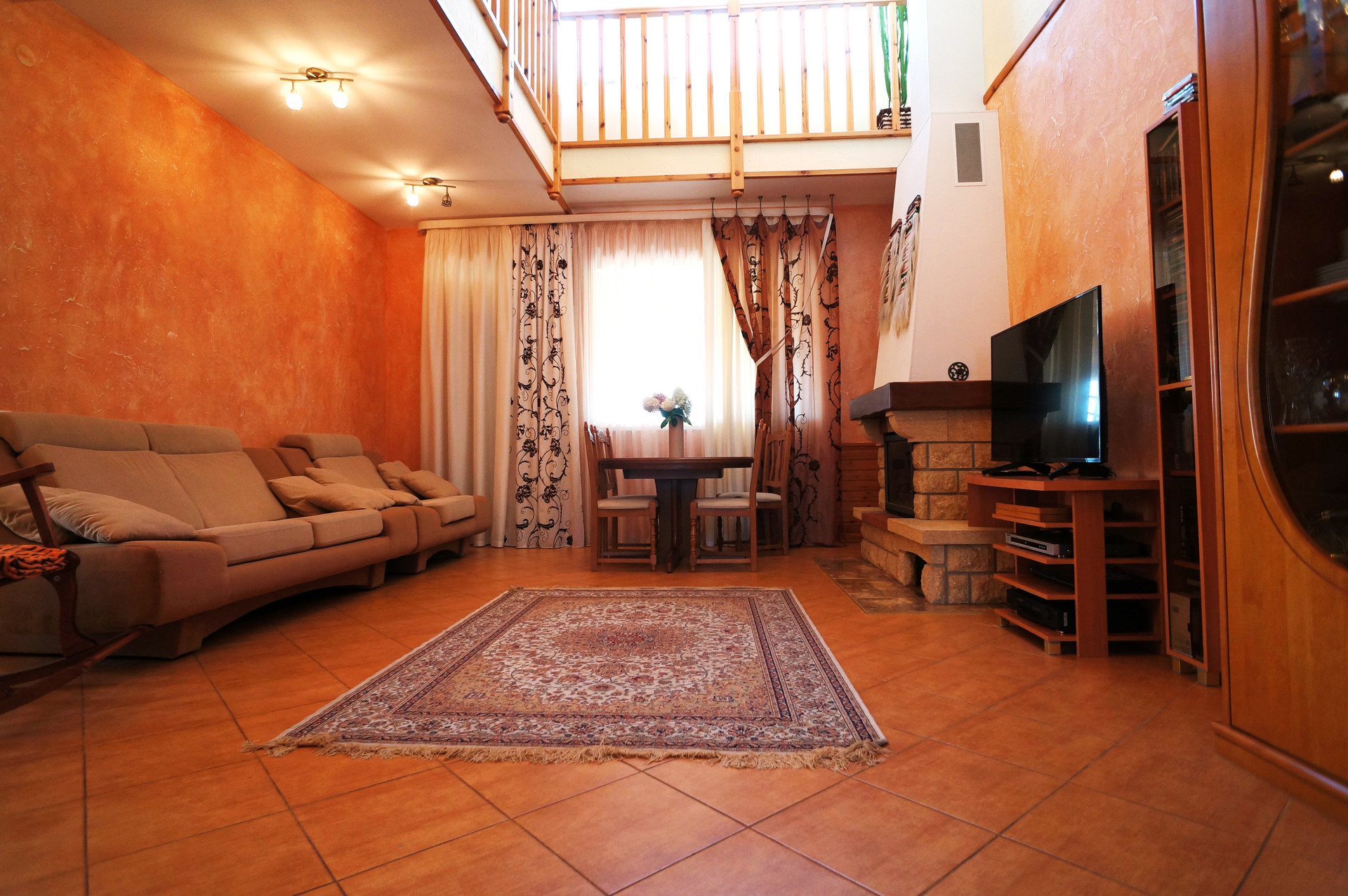 1 этаж - холл, столовая, гостиная с действующим камином, рабочий кабинет, спальня, большой с/узел, выход на открытую террасу.