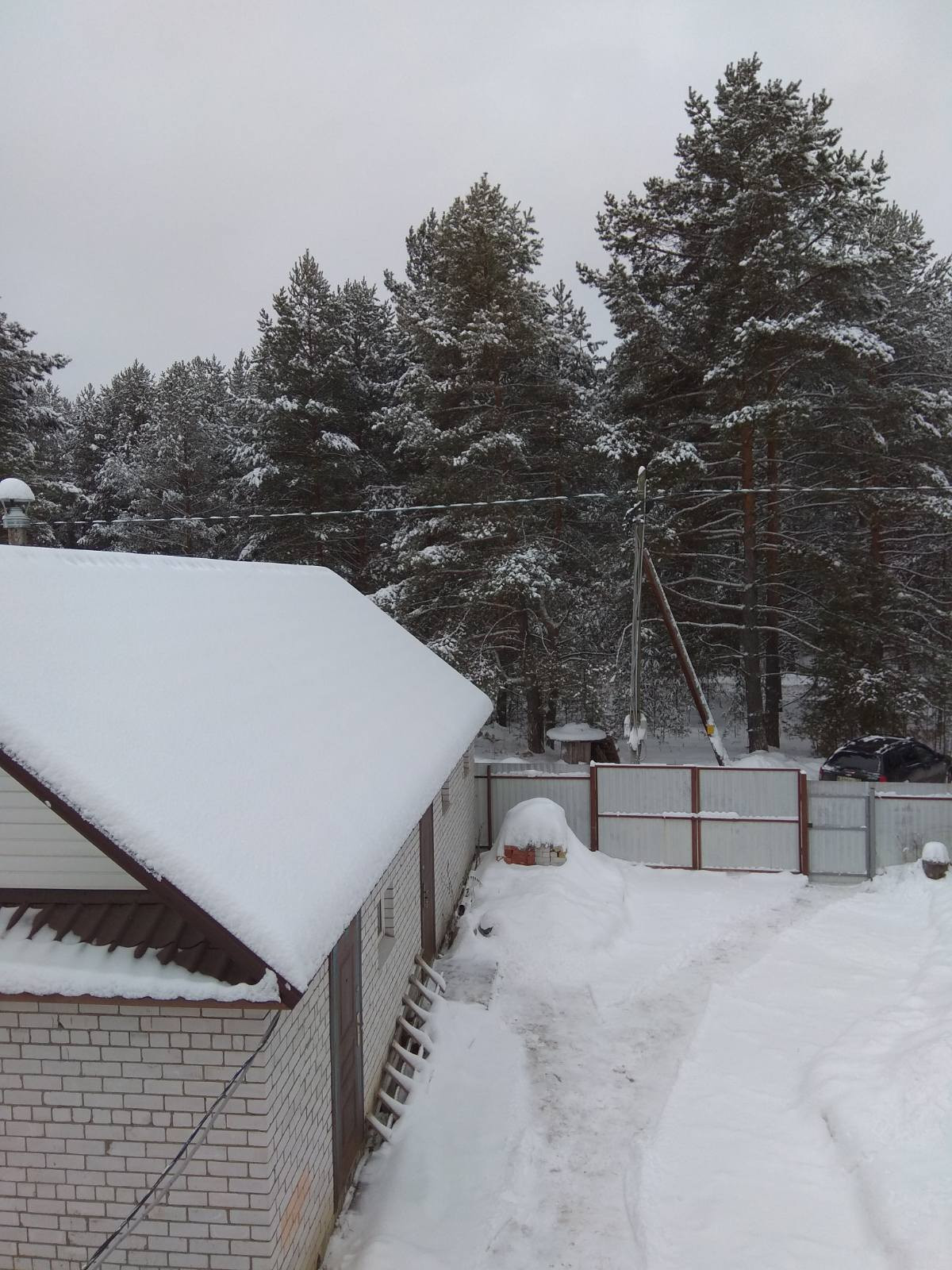 На участке предусмотрена стоянка для двух машин.