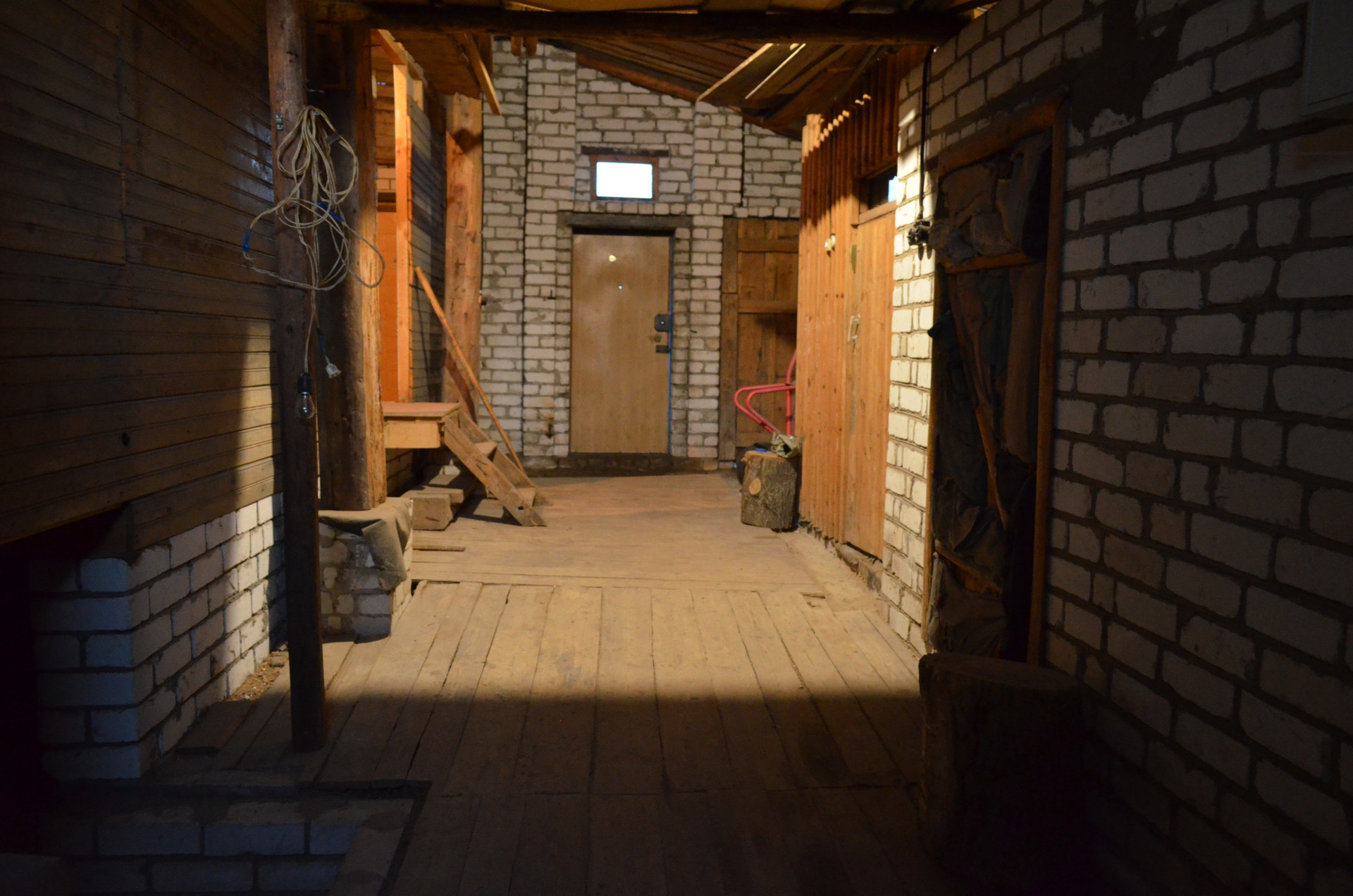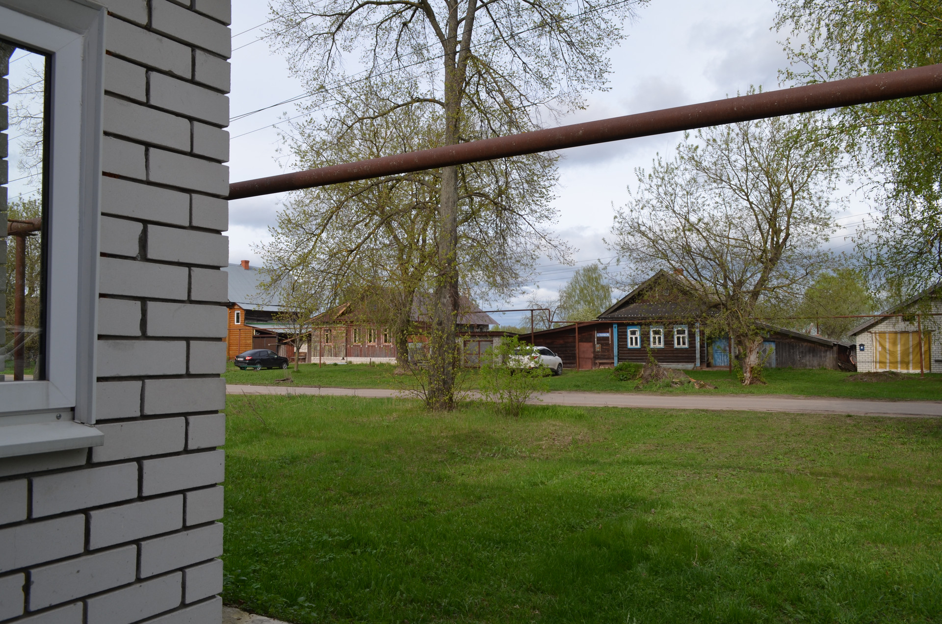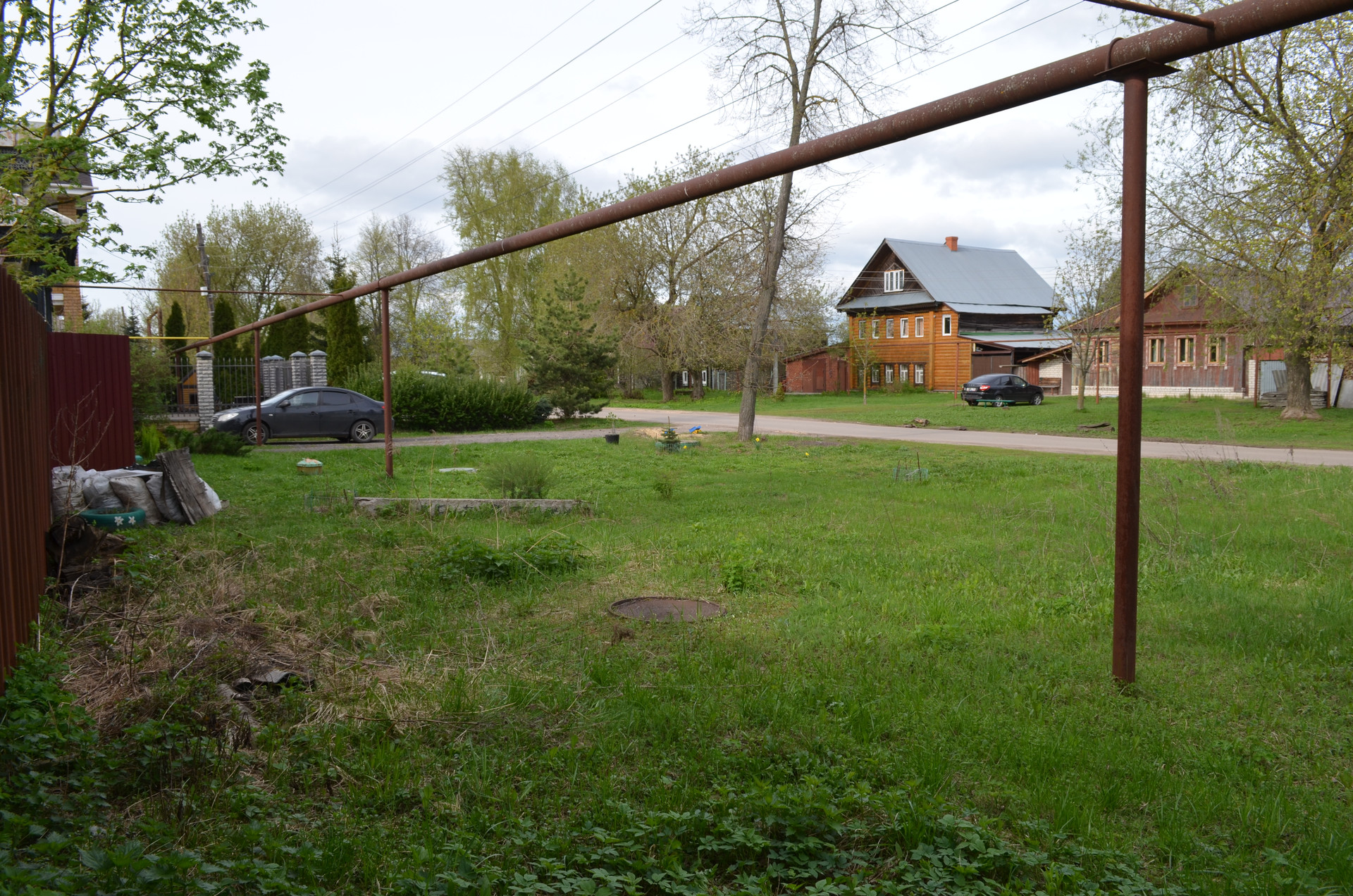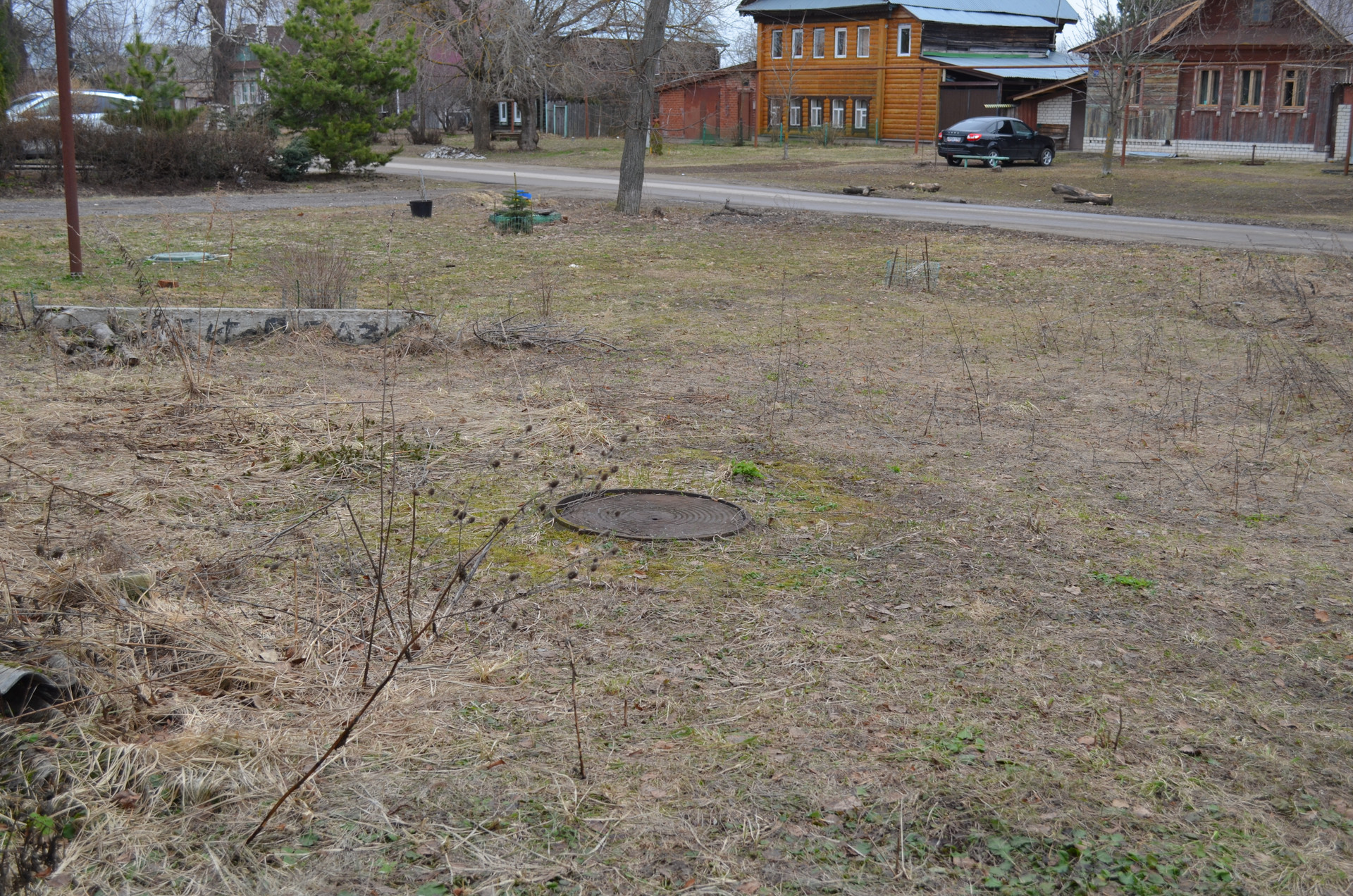 Перед домом - большое пространство, на котором может разместиться несколько автомобилей. Также спереди дома находится доступ к канализационному сливу, выложенному кирпичом.