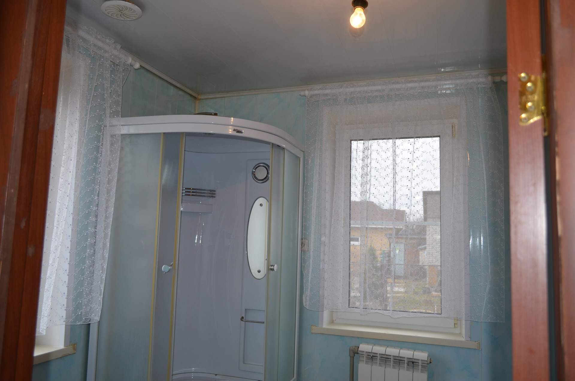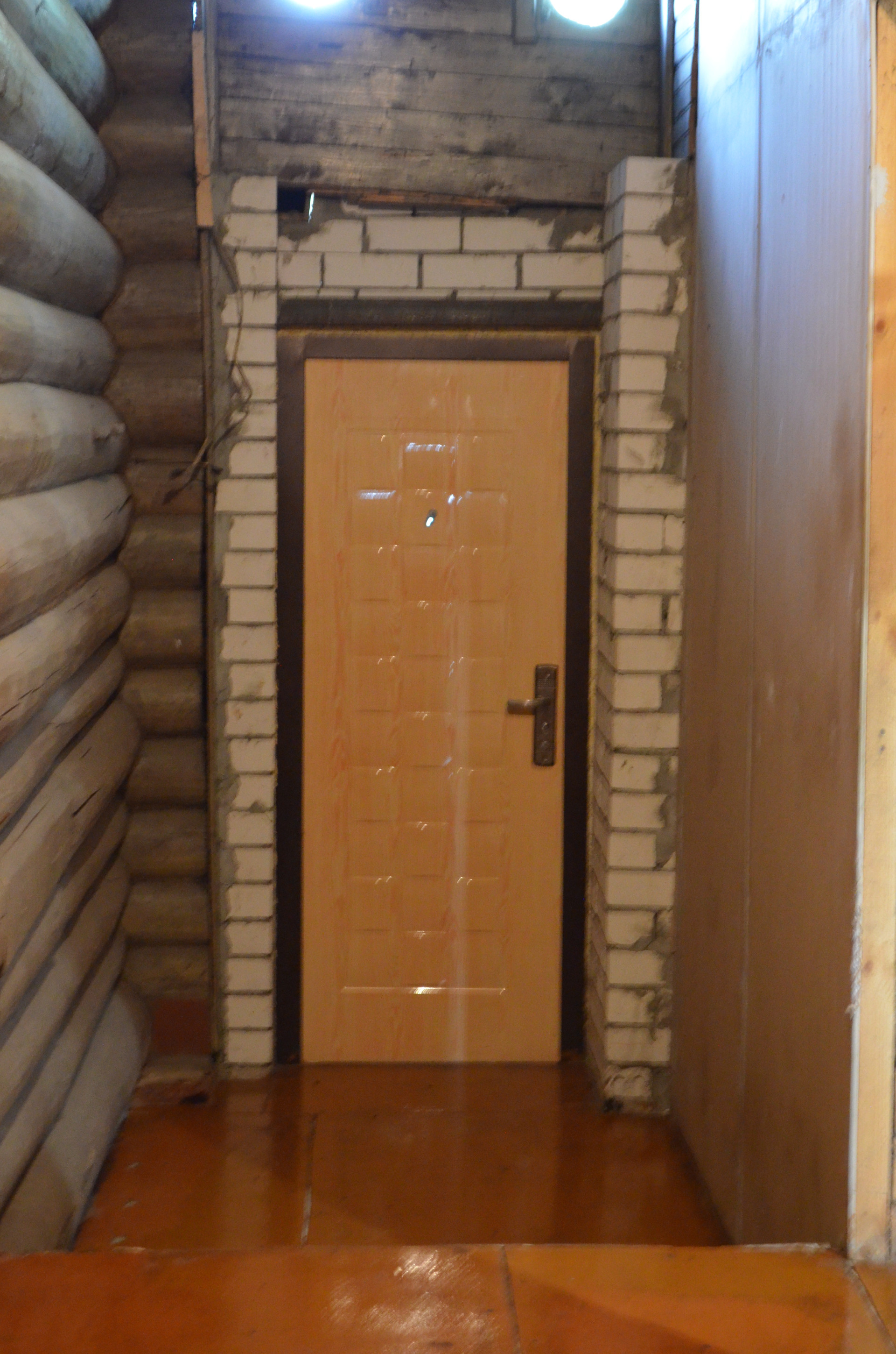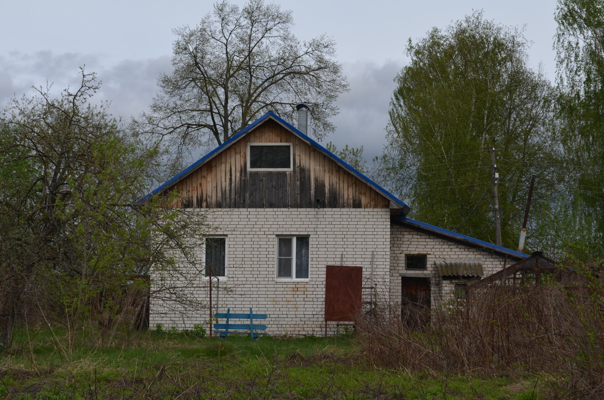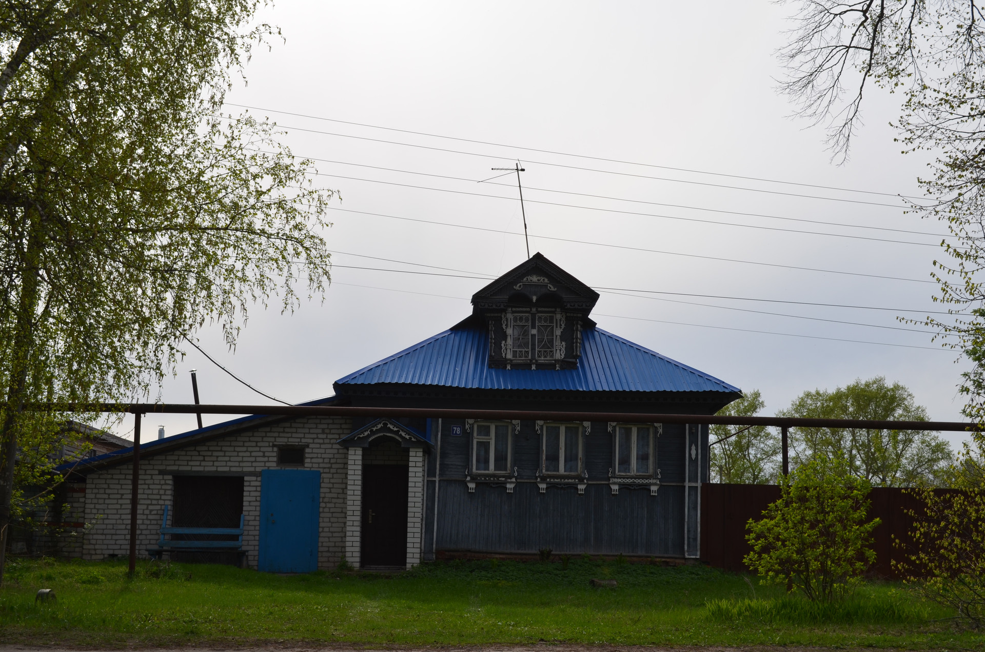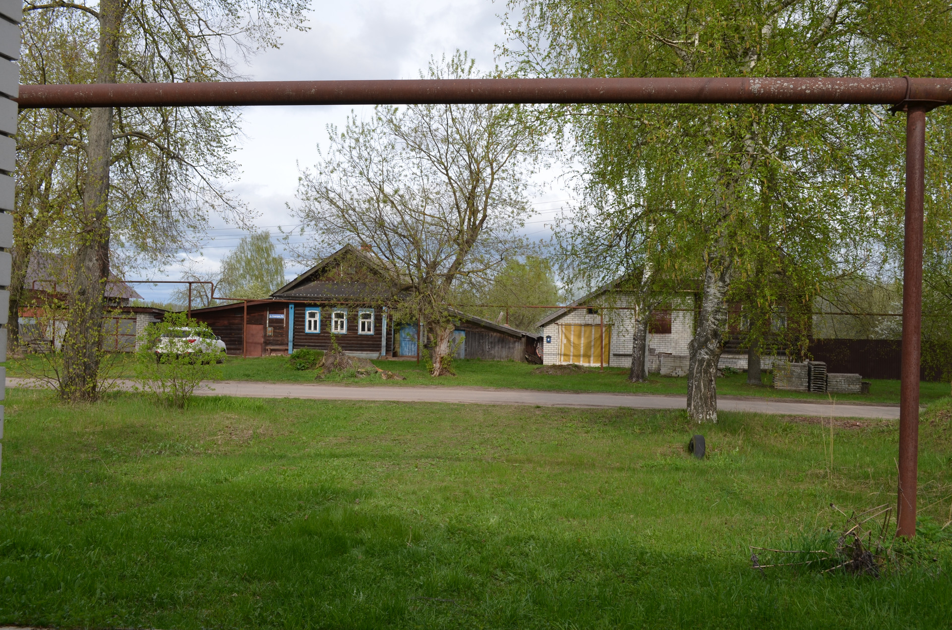 Перед домом - большое пространство, на котором может разместиться несколько автомобилей. Также спереди дома находится доступ к канализационному сливу, выложенному кирпичом.