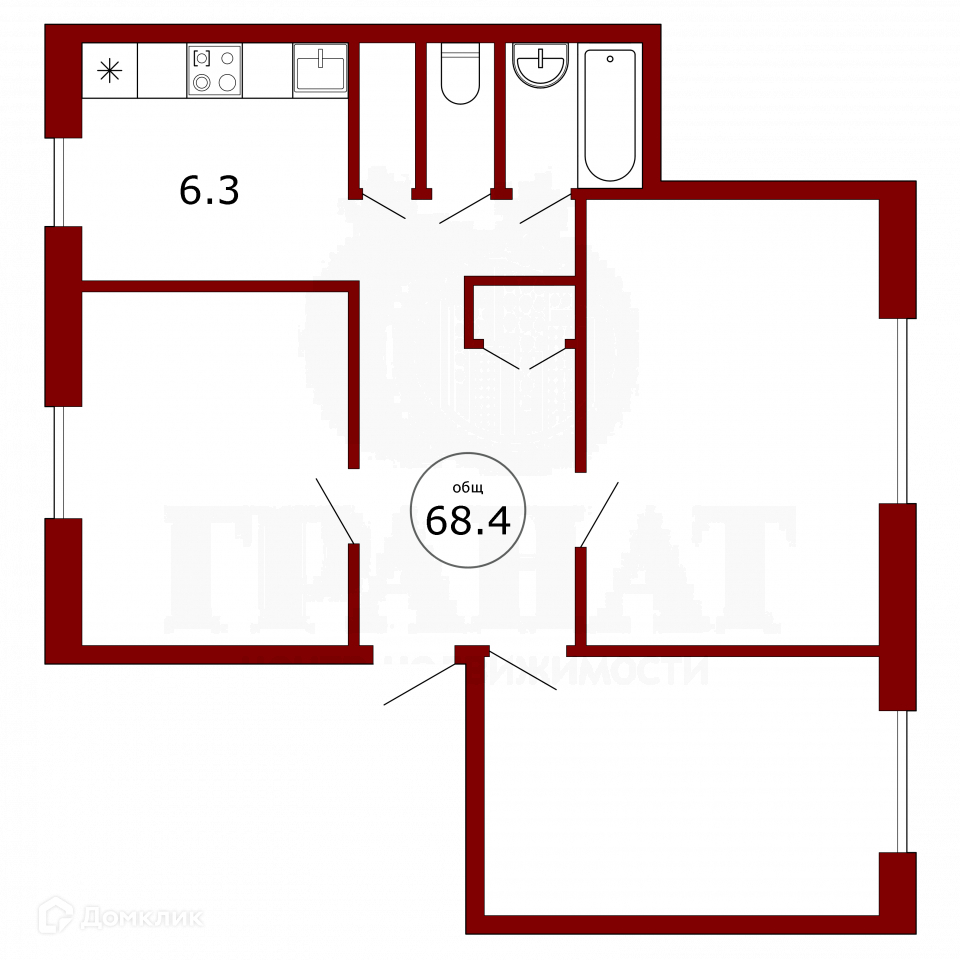 Общая площадь 68.4 м2