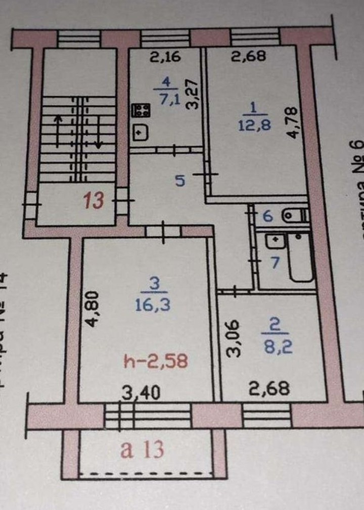 Площадь кухни 7.1 м2