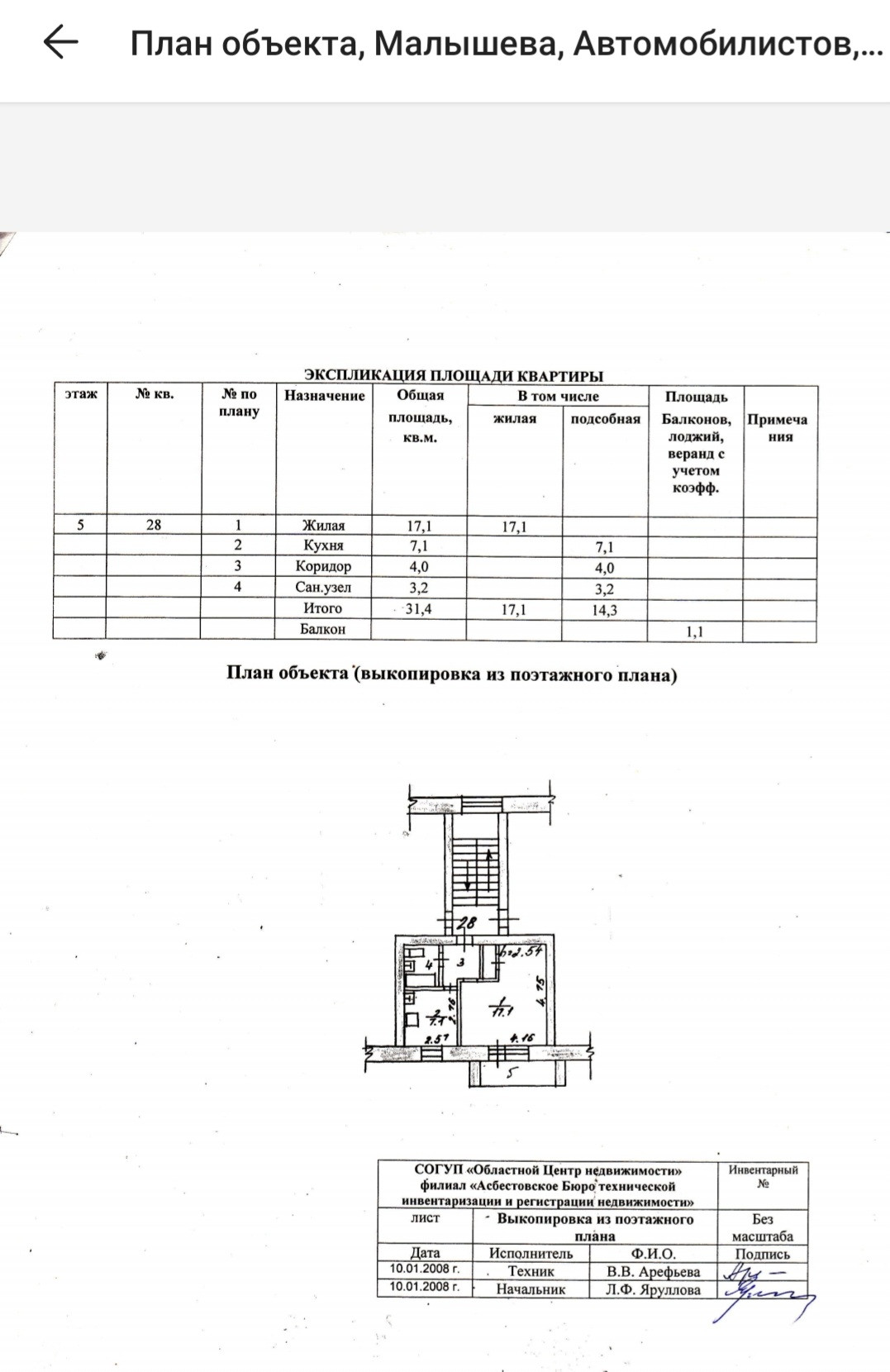 Общая площадь 31.4 м2