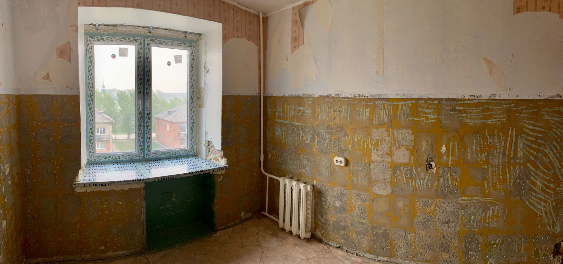 Однокомная квартира площадью 31.5 кв. м., которая находится на четвёртом этаже в пятиэтажном кирпичном доме. Удачное расположение дома в центре посёлка во дворе домов на удалении от проезжей части. Вблизи находятся продуктовые магазины, автобусная остановка и детская площадка. Квартира готова к ремонту, вставлены пластиковые окна.