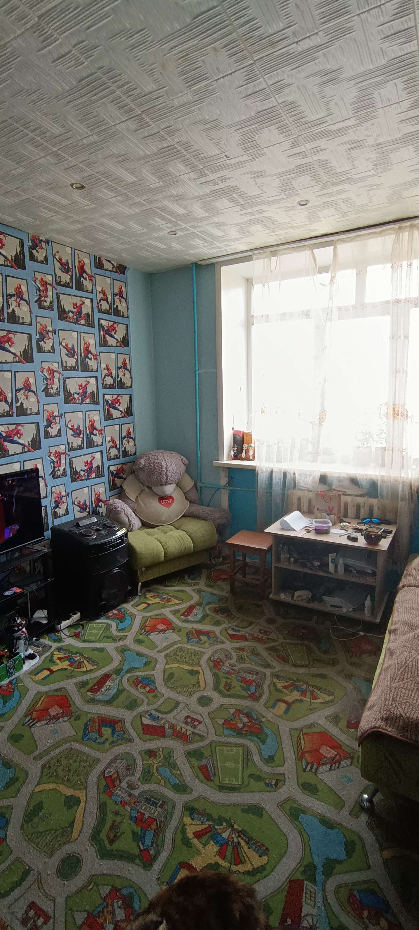 В квартире две изолированных комнаты. Высокие потолки. В одной комнате натяжной потолок.