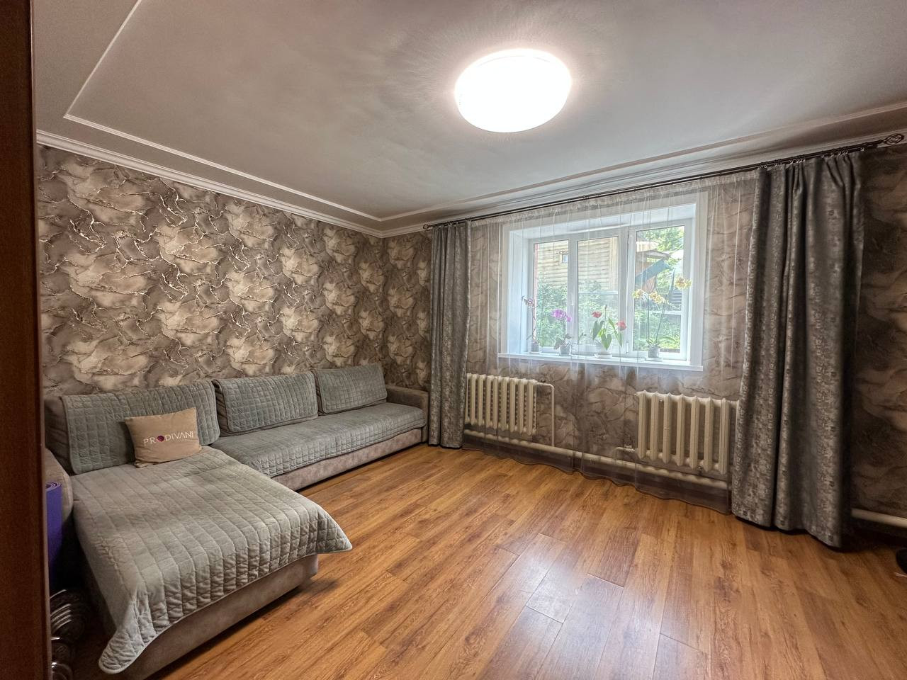 Материал стен - кирпич. Толщина стен 2.5 кирпича.Пластиковые окна ( 5- ти камерные солнцезащитные с широкими подоконниками)