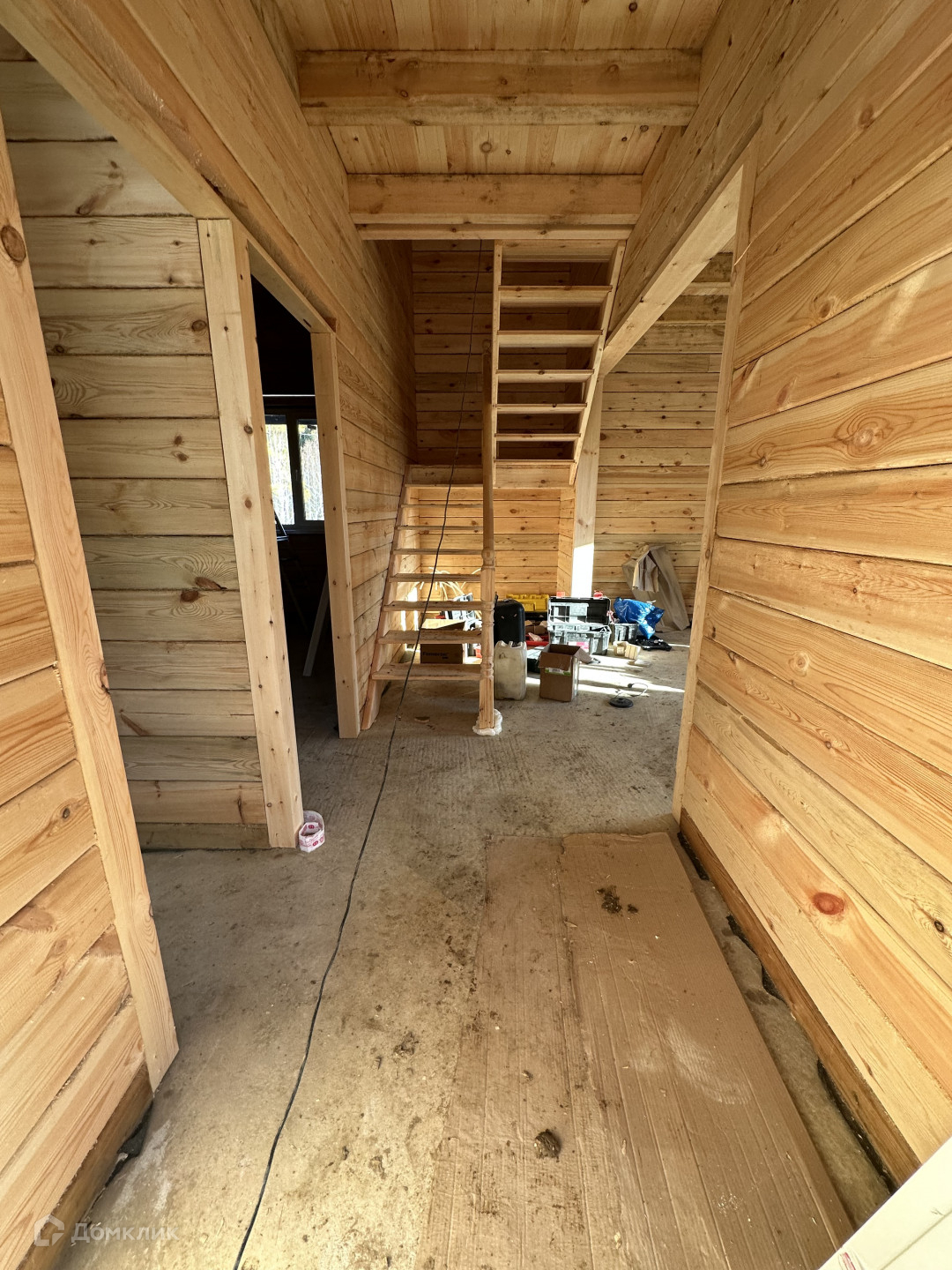 Планировка :большая терраса вокруг дома , коридор , кухня гостиная , три спальни (комнаты раздельные )гардеробная и сан.узел.